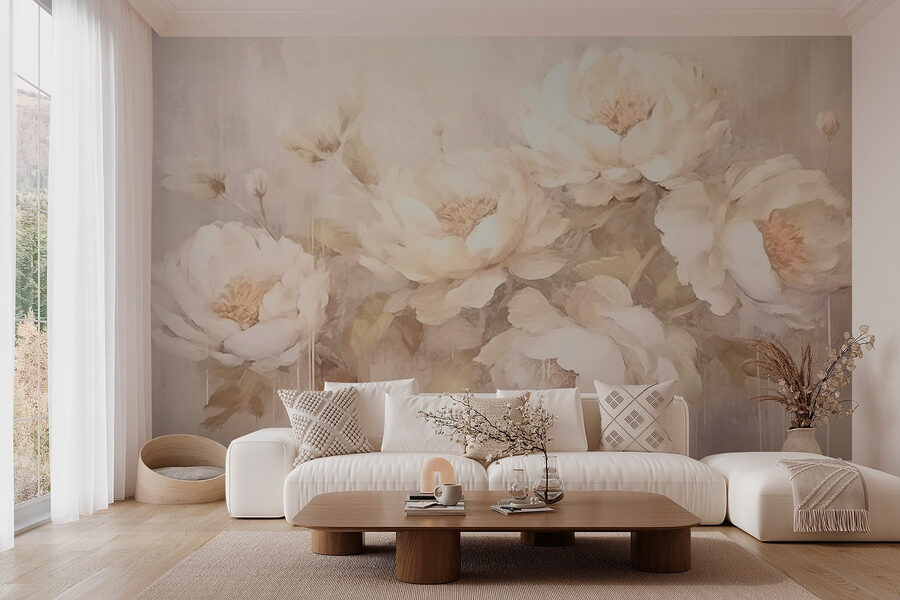 Μεταμορφώστε κάθε δωμάτιο με αυτή την υπέροχη τοιχογραφία λευκών λουλουδιών. Φανταστείτε αυτό: έναν άνετο χώρο όπου αυτές οι απαλές, ανθισμένες παιώνιες μοιάζουν να χορεύουν στον τοίχο, φέρνοντας μια ανάσα φρέσκου αέρα στο σπίτι σας. Δεν είναι απλώς λουλούδια, είναι μια απαλή αγκαλιά για τα μάτια. Φανταστείτε να πίνετε τσάι ενώ ατενίζετε τις λεπτές πινελιές, νιώθοντας ταυτόχρονα ήρεμοι και εμπνευσμένοι. Είναι σαν οι τοίχοι σας να έχουν έναν μυστικό κήπο, γεμάτο ηρεμία και γοητεία. Ιδανική για όσους επιθυμούν ένα άγγιγμα φύσης σε εσωτερικούς χώρους, αυτή η τοιχογραφία είναι σαν να προσκαλείτε την άνοιξη στην καθημερινότητά σας.
