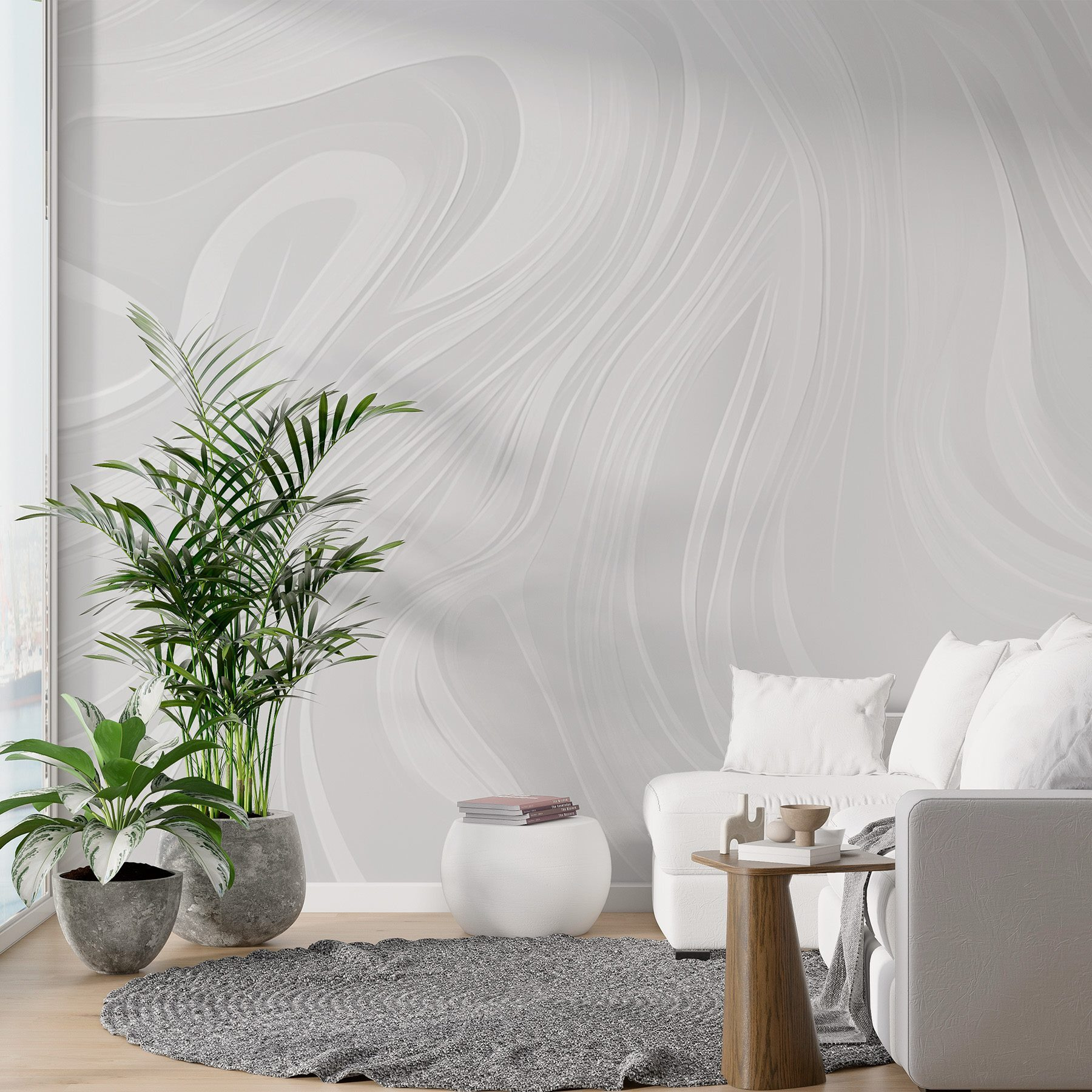 Μεταμορφώστε έναν απλό τοίχο σε μια ονειρική απόδραση με αυτή την τοιχογραφία με απαλές, κυματιστές γραμμές σε λευκό φόντο. Είναι σαν να φέρνετε ένα κομμάτι ηρεμίας στο χώρο σας, δημιουργώντας μια χαλαρωτική ατμόσφαιρα που ψιθυρίζει χαλάρωση. Φανταστείτε να πίνετε τον καφέ σας απολαμβάνοντας την απαλή κίνηση αυτών των γραμμών – μοιάζουν σχεδόν με σύννεφα που χορεύουν στον ουρανό. Ιδανική για κάθε δωμάτιο που χρειάζεται μια πινελιά κομψότητας, αυτή η τοιχογραφία έχει μια αβίαστη γοητεία που συνδυάζεται υπέροχα με ζωντανή διακόσμηση. Ετοιμαστείτε για τους καλεσμένους σας να ρωτούν από πού προήλθε αυτός ο εκπληκτικός τοίχος!