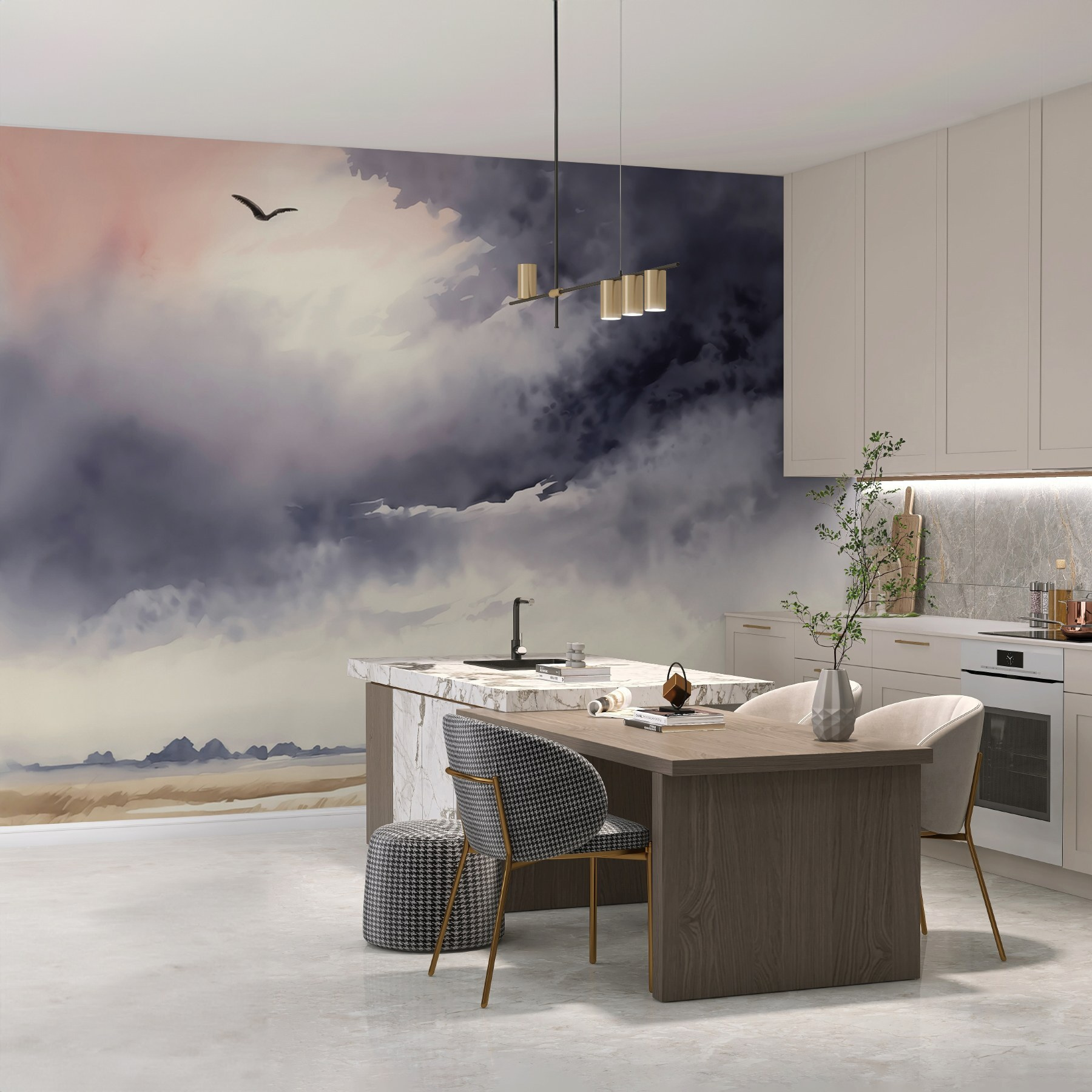 Μεταμορφώστε το χώρο σας με τη μαγευτική τοιχογραφία “Bird Flying Over a Field”. Φανταστείτε να μπαίνετε σε ένα γαλήνιο πανόραμα, όπου ένα μοναχικό πουλί γλιστράει μέσα σε ονειρεμένο ουρανό με νερομπογιές. Αυτές οι απαλές αποχρώσεις προσδίδουν μια ηρεμιστική ατμόσφαιρα – ιδανική για τη δημιουργία μιας άνετης γωνιάς ανάγνωσης ή ενός εμπνευσμένου γραφείου. Φανταστείτε να πίνετε τον καφέ σας ατενίζοντας αυτά τα σύννεφα, που ψιθυρίζουν μυστικά που όλοι θα θέλαμε να μπορούσαμε να ακούσουμε. Είναι σαν να έχετε ένα παράθυρο στη φύση ακριβώς στον τοίχο σας, που σας υπενθυμίζει να πάρετε μια βαθιά ανάσα και να απολαύσετε την ομορφιά έξω. Ιδανική για τους λάτρεις της μοναδικής διακόσμησης, αυτή η τοιχογραφία τυλίγει κάθε δωμάτιο με ηρεμία, κάνοντας κάθε στιγμή να μοιάζει λίγο πιο μαγική.