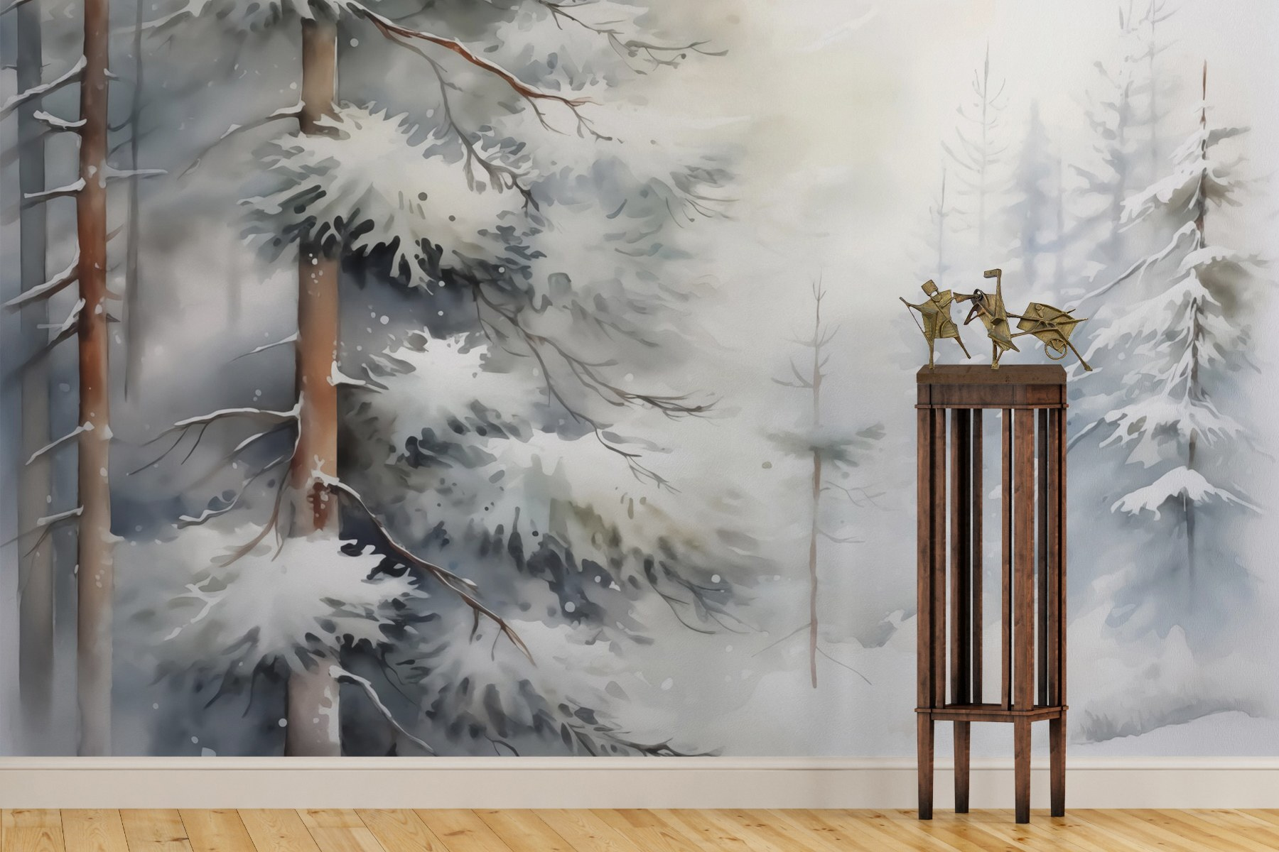 Φανταστείτε να μπαίνετε σε ένα γαλήνιο χειμωνιάτικο τοπίο θαυμάτων κάθε φορά που μπαίνετε στο χώρο σας. Αυτή η τοιχογραφία με τα χιονισμένα δέντρα φέρνει αυτή τη φιλόξενη ψύχρα στους τοίχους σας, ιδανική για όσους λατρεύουν την ήσυχη ομορφιά της φύσης. Οι απαλές αποχρώσεις και οι απαλές αποχρώσεις του λευκού και του γκρι δημιουργούν μια χαλαρωτική ατμόσφαιρα, κάνοντας την να μοιάζει με ένα ζεστό φλιτζάνι κακάο μια χιονισμένη μέρα. Είναι σαν να αγκαλιάζετε ένα πεύκο, χωρίς το κρύο! Ιδανικό για ένα σαλόνι ή μια ζεστή γωνιά, θα προκαλέσει χαμόγελα και θα φέρει ζεστασιά στα ψυχρά βράδια. Μεταμορφώστε το σπίτι σας σε ένα δασικό καταφύγιο – δεν απαιτούνται μπότες χιονιού!