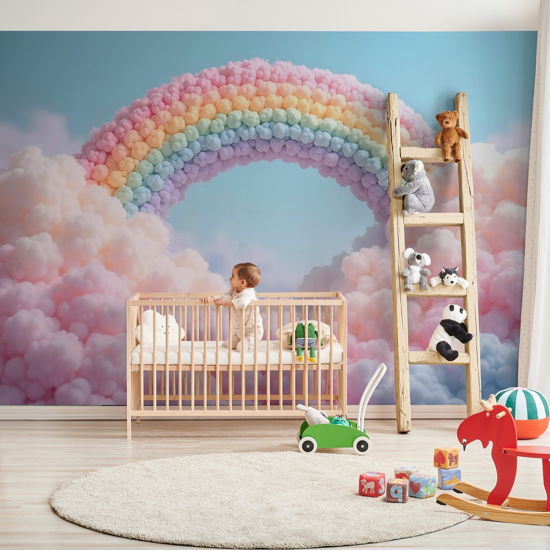 Μεταμορφώστε οποιονδήποτε χώρο με αυτό το απολαυστικό “Ταπετσαρίες Rainbow Made of Clouds”. Φανταστείτε να μπαίνετε σε ένα δωμάτιο όπου τα χνουδωτά σύννεφα και τα παστέλ ουράνια τόξα φέρνουν μια ονειρική ατμόσφαιρα – είναι σαν μια απαλή αγκαλιά για τους τοίχους σας! Ιδανικό για να φωτίσετε ένα παιδικό δωμάτιο, ένα δωμάτιο παιχνιδιού ή ακόμα και μια ζεστή γωνιά ανάγνωσης. Οι απαλές αποχρώσεις προσκαλούν την αίσθηση της ηρεμίας, καθιστώντας δύσκολο να μην χαμογελάσετε. Φανταστείτε μια βροχερή μέρα που γίνεται ηλιόλουστη, όπου μόνο μια ματιά μπορεί να αναπτερώσει τη διάθεση. Είναι ιδιότροπο και ταυτόχρονα καταπραϋντικό – αυτό ακριβώς που χρειάζεται κάθε σπίτι. Αναβαθμίστε το παιχνίδι της διακόσμησής σας με μια πινελιά ευφάνταστης ευθυμίας!