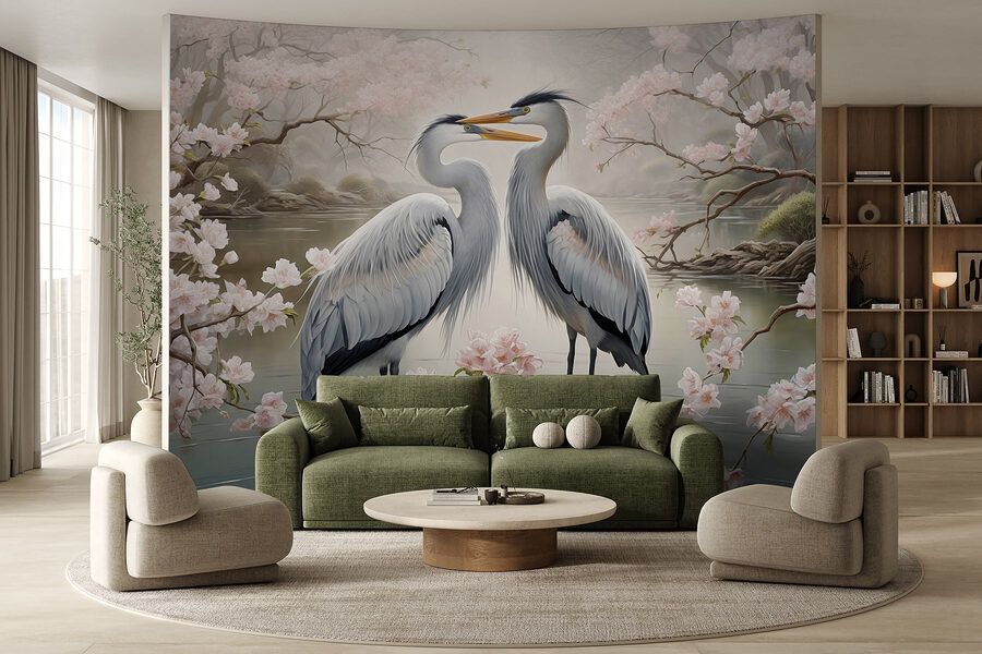 Μεταμορφώστε το χώρο σας με αυτή τη μαγευτική τοιχογραφία με ένα ζευγάρι χαριτωμένων λευκών πουλιών που στέκονται σε γαλήνιο νερό, περιτριγυρισμένα από ντελικάτα ροζ λουλούδια. Είναι σαν να έχετε ένα κομμάτι από έναν γαλήνιο ιαπωνικό κήπο στο σπίτι σας! Φανταστείτε να πίνετε τσάι καθώς το φως του ήλιου χορεύει στην επιφάνεια του νερού, ρίχνοντας παιχνιδιάρικες αντανακλάσεις. Οι απαλές αποχρώσεις της ακουαρέλας δημιουργούν μια φιλόξενη, ζεστή ατμόσφαιρα – ιδανική για μια γωνιά ανάγνωσης ή ένα ήσυχο καταφύγιο. Είναι μια υπέροχη υπενθύμιση της ομορφιάς της φύσης, και ειλικρινά, ποιος δεν θα ήθελε λίγο ρομαντισμό με φτερά στους τοίχους του; Φωτεινή, ευγενική και απόλυτα γοητευτική, αυτή η τοιχογραφία θα κλέψει σίγουρα την παράσταση – ακριβώς όπως αυτά τα πουλιά!
