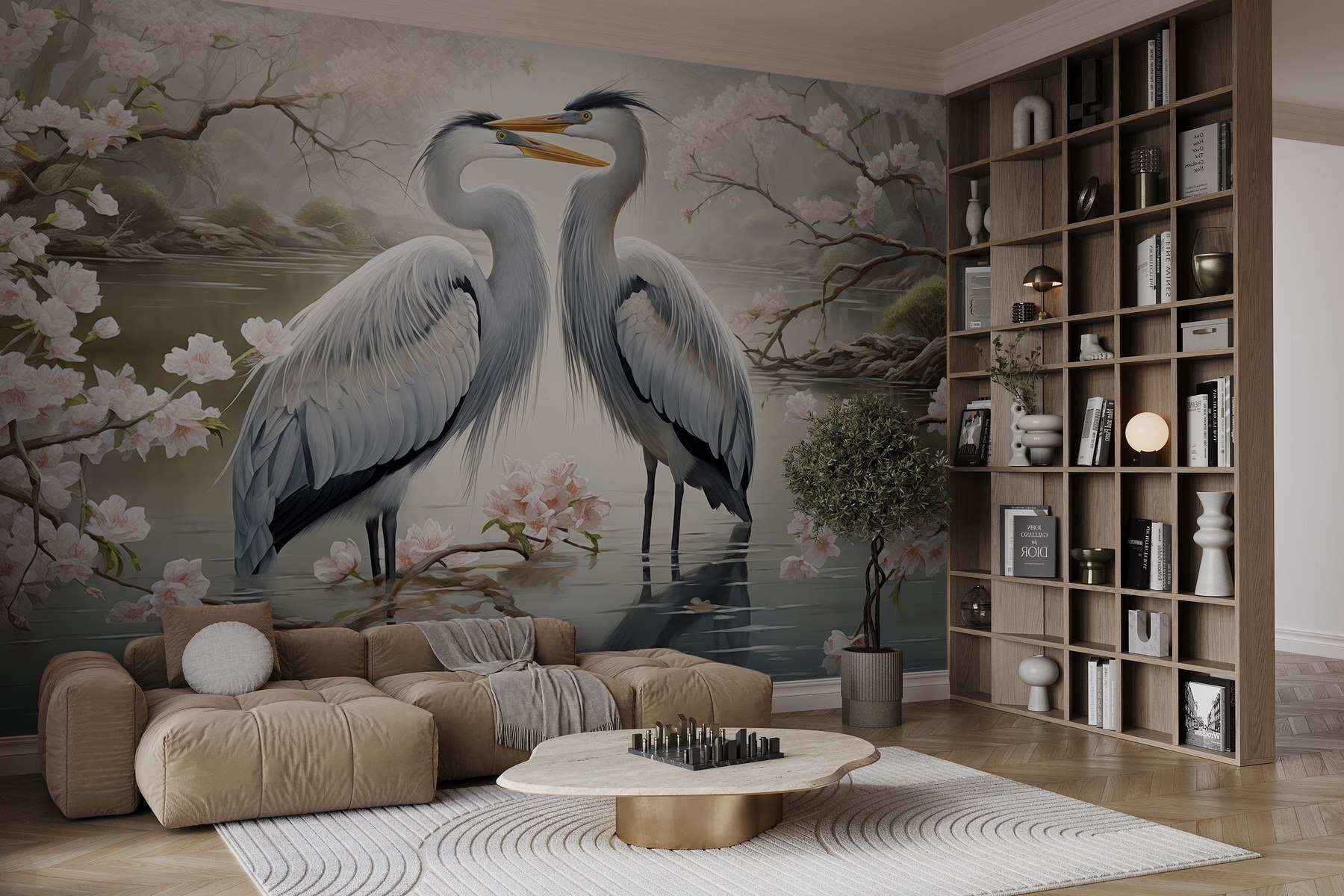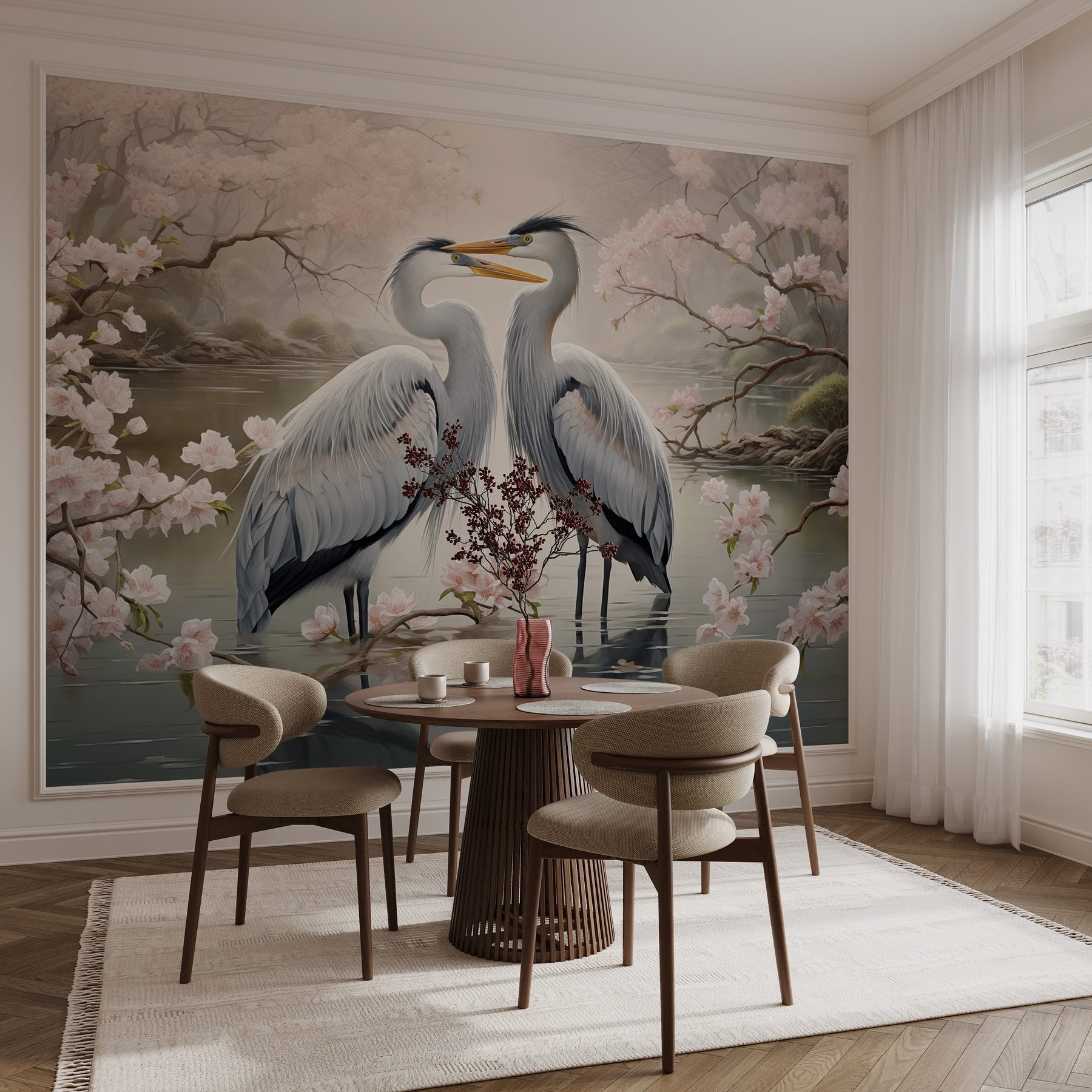 Μεταμορφώστε το χώρο σας με αυτή τη μαγευτική τοιχογραφία με ένα ζευγάρι χαριτωμένων λευκών πουλιών που στέκονται σε γαλήνιο νερό, περιτριγυρισμένα από ντελικάτα ροζ λουλούδια. Είναι σαν να έχετε ένα κομμάτι από έναν γαλήνιο ιαπωνικό κήπο στο σπίτι σας! Φανταστείτε να πίνετε τσάι καθώς το φως του ήλιου χορεύει στην επιφάνεια του νερού, ρίχνοντας παιχνιδιάρικες αντανακλάσεις. Οι απαλές αποχρώσεις της ακουαρέλας δημιουργούν μια φιλόξενη, ζεστή ατμόσφαιρα – ιδανική για μια γωνιά ανάγνωσης ή ένα ήσυχο καταφύγιο. Είναι μια υπέροχη υπενθύμιση της ομορφιάς της φύσης, και ειλικρινά, ποιος δεν θα ήθελε λίγο ρομαντισμό με φτερά στους τοίχους του; Φωτεινή, ευγενική και απόλυτα γοητευτική, αυτή η τοιχογραφία θα κλέψει σίγουρα την παράσταση – ακριβώς όπως αυτά τα πουλιά!