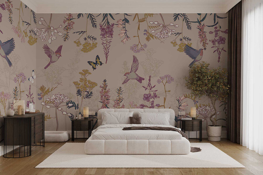 Μεταμορφώστε οποιονδήποτε χώρο σε ένα γαλήνιο καταφύγιο με αυτή την υπέροχη τοιχογραφία τοίχου με λεπτεπίλεπτα πουλιά και παράξενα λουλούδια. Είναι σαν να φέρνετε τη χαρά της άνοιξης μέσα στο σπίτι σας, ανεξάρτητα από την εποχή έξω. Φανταστείτε να απολαμβάνετε τον πρωινό σας καφέ, ενώ ατενίζετε τις ζωντανές πεταλούδες που πετούν ανάμεσα στα άνθη – θα μεταφερθείτε σε μια στιγμή σε μια όαση κήπου. Οι απαλές, γήινες αποχρώσεις δημιουργούν ένα ζεστό σκηνικό που ταιριάζει σε κάθε δωμάτιο, καθιστώντας το ιδανικό για φιλόξενες γωνιές ή για εκείνον τον τοίχο που ζητιανεύει για λίγη αγάπη. Είναι ένα σικ εμπνευσμένο από τη φύση, με μια πινελιά παιχνιδιάρικης κομψότητας – ποιος δεν θα το ήθελε αυτό;