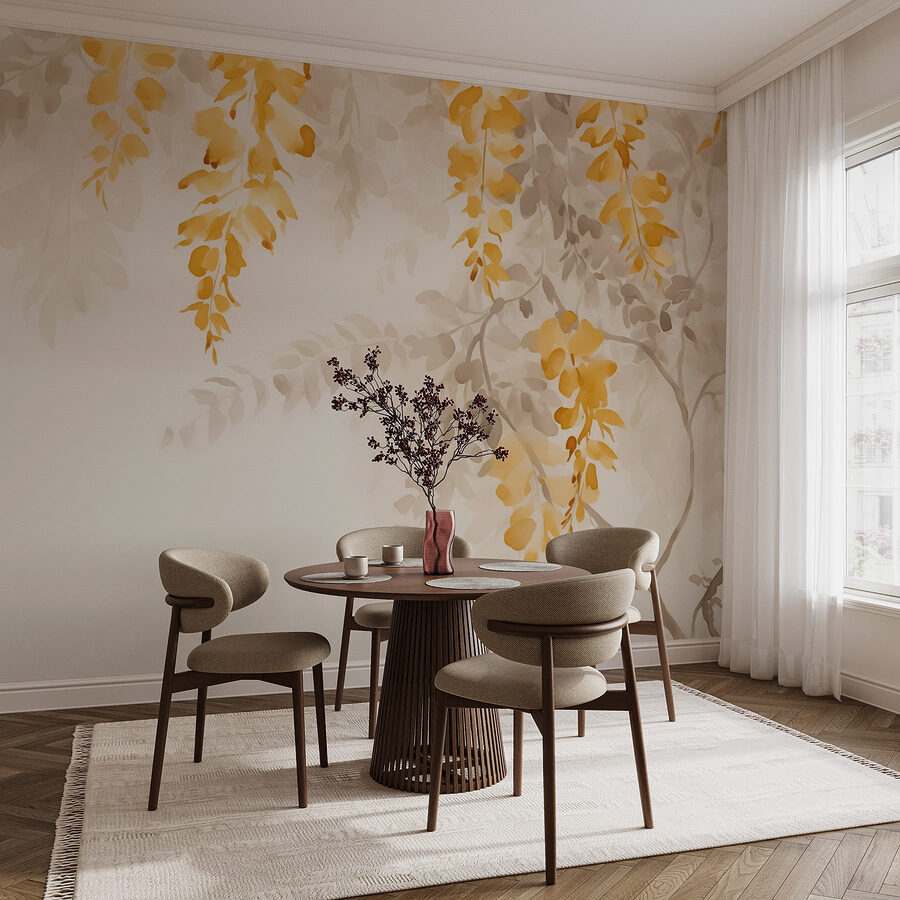 Μεταμορφώστε το χώρο σας με αυτή την εκπληκτική τοιχογραφία τοίχου με κίτρινα και γκρι φύλλα σε καθαρό λευκό φόντο. Είναι σαν να φέρνετε μια ανάσα φρέσκου αέρα σε εσωτερικούς χώρους – δεν απαιτούνται γνώσεις κηπουρικής! Φανταστείτε να πίνετε τον πρωινό σας καφέ περιτριγυρισμένοι από τις απαλές αποχρώσεις της φύσης, σοβαρά, πόσο ηρεμιστικό είναι αυτό;