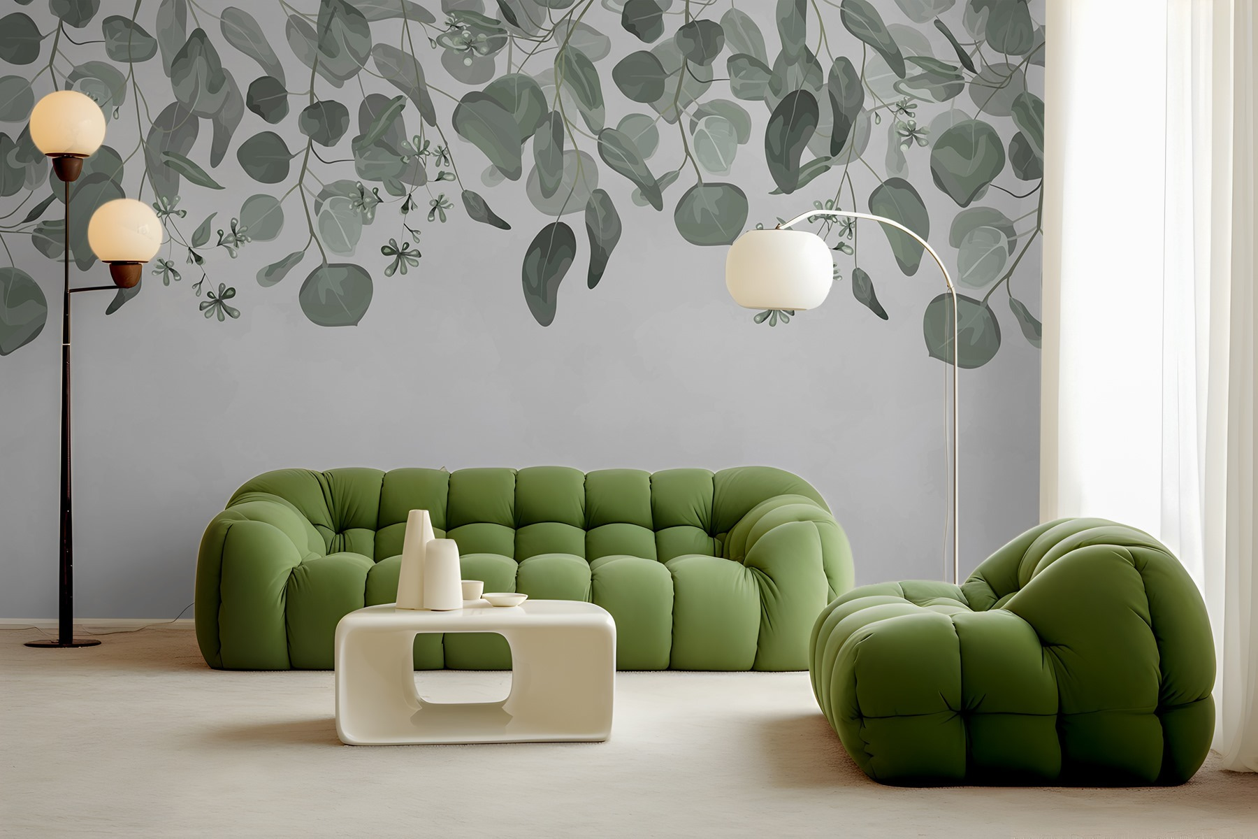 Μεταμορφώστε το χώρο σας με την τοιχογραφία “Πλούσια φύλλα σε μαλακό φόντο”. Φανταστείτε να μπαίνετε σε μια γαλήνια όαση ακριβώς στο σαλόνι σας! Τα λεπτεπίλεπτα φύλλα χορεύουν πάνω στον τοίχο, δημιουργώντας μια αέρινη ατμόσφαιρα. Είναι σαν να φέρνετε λίγη από τη φύση στους εσωτερικούς χώρους – χωρίς τα έντομα, ευτυχώς. Τα καταπραϋντικά πράσινα χρώματα ταιριάζουν υπέροχα με κάθε χρωματικό συνδυασμό, καθιστώντας το ιδανικό για άνετες γωνιές ή φωτεινούς, ανοιχτούς χώρους. Φανταστείτε να πίνετε καφέ, να ονειροπολείτε, ενώ το απαλό φύλλωμα ψιθυρίζει: “Χαλαρώστε, είστε στο σπίτι”. Αυτή η τοιχογραφία δεν διακοσμεί απλώς, αλλά προσκαλεί την ηρεμία και τη ζεστασιά στην καθημερινή ζωή. Επιπλέον, ποιος δεν θα ήθελε ο τοίχος του να μοιάζει με ένα γαλήνιο δασικό καταφύγιο;