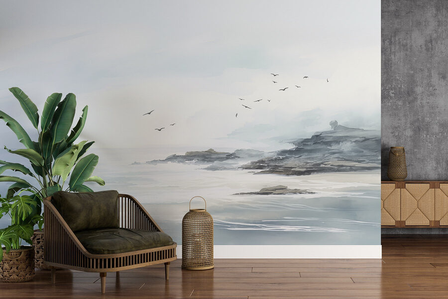 Μεταμορφώστε οποιοδήποτε δωμάτιο με αυτή τη μαγευτική τοιχογραφία, “Πουλιά που πετούν πάνω από μια βραχώδη παραλία”. Φανταστείτε να ξυπνάτε με τις απαλές αποχρώσεις του ωκεανού και αυτά τα ονειρεμένα πουλιά να πλέουν στον ουρανό. Είναι σαν μια μίνι-διακοπή στον τοίχο σας! Τα απαλά χρώματα δημιουργούν μια καταπραϋντική ατμόσφαιρα, ιδανική για έναν χαλαρό χώρο διαβίωσης ή ένα γαλήνιο υπνοδωμάτιο.