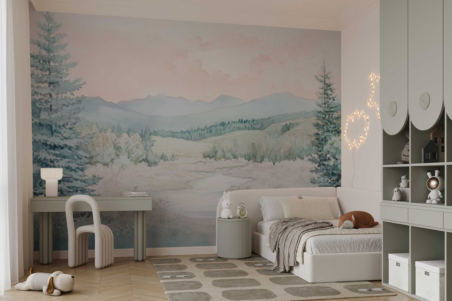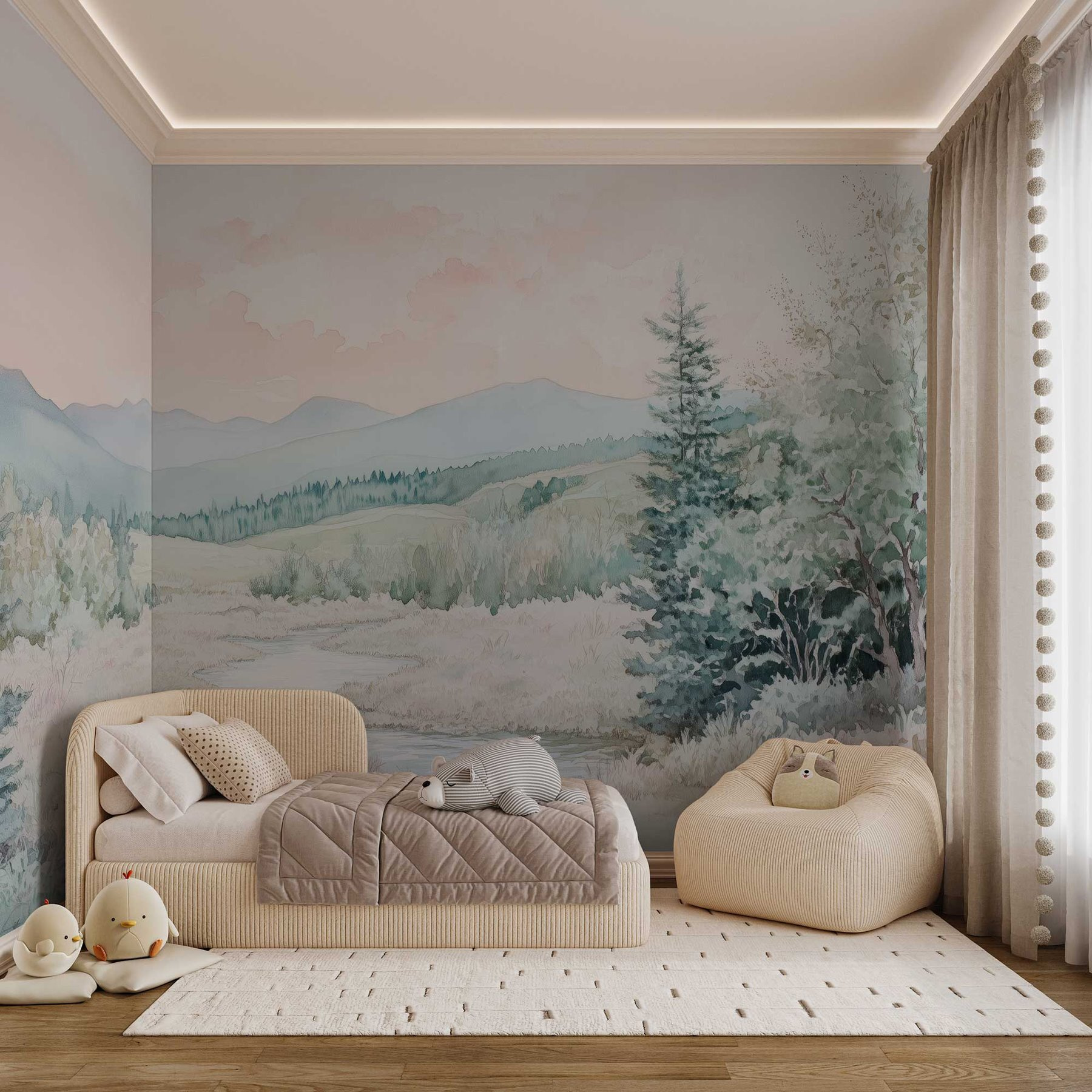 Μεταμορφώστε έναν απλό τοίχο σε μια γαλήνια απόδραση με αυτή τη μαγευτική τοιχογραφία ακουαρέλας ενός ποταμού που ελίσσεται μέσα σε μια καταπράσινη κοιλάδα. Αυτή η ομορφιά αιχμαλωτίζει απαλά παστέλ και απαλές πινελιές, κάνοντάς την να μοιάζει με μια ζεστή αγκαλιά για κάθε χώρο. Φανταστείτε να απολαμβάνετε τον πρωινό σας καφέ ενώ ατενίζετε αυτή την ειρηνική σκηνή – είναι σαν μια μίνι-διακοπή στο σπίτι σας. Ιδανικό για υπνοδωμάτια ή σαλόνια, προσθέτει μια καταπραϋντική ατμόσφαιρα που μπορεί να ηρεμήσει ακόμα και τις πιο πολυάσχολες μέρες. Επιπλέον, οι λάτρεις της φύσης θα νιώσουν σαν στο σπίτι τους εδώ, περιτριγυρισμένοι από δέντρα και εκπληκτικά βουνά. Προχωρήστε – φέρτε λίγο ύπαιθρο μέσα και αφήστε τους τοίχους σας να διηγηθούν μια ιστορία ηρεμίας!