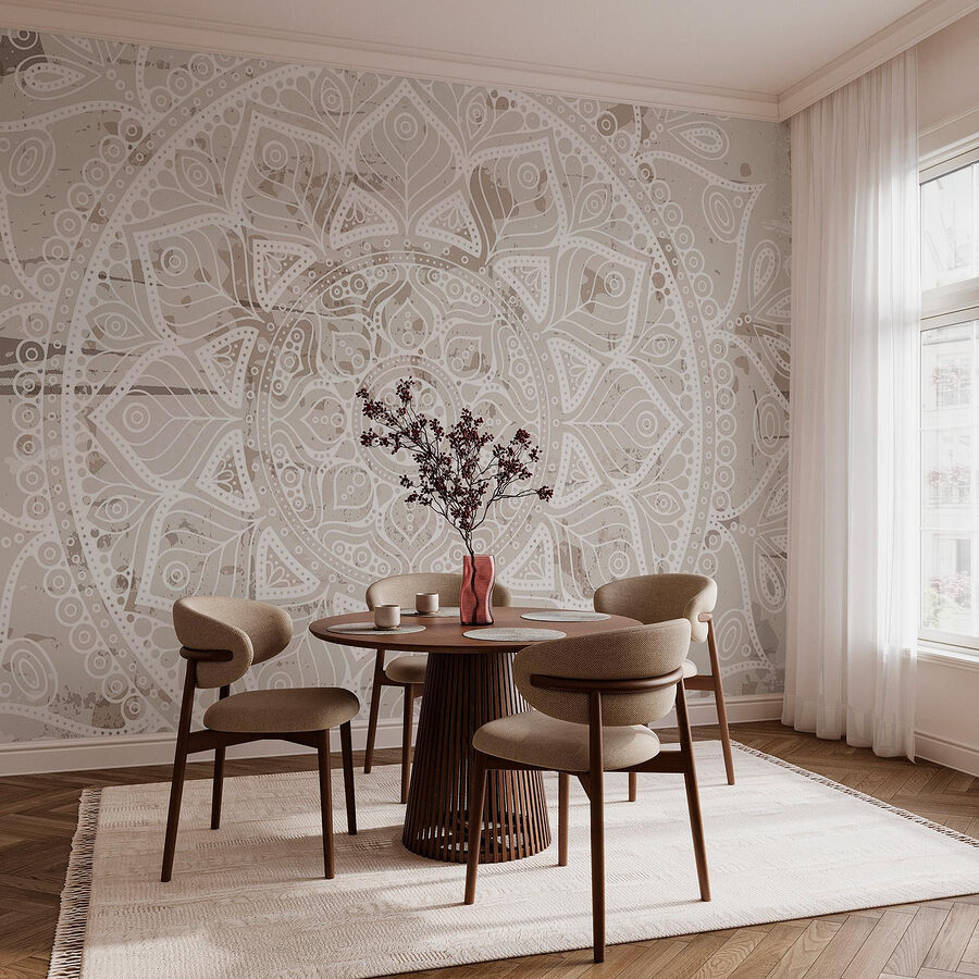 Μεταμορφώστε οποιονδήποτε χώρο με αυτή την εκπληκτική τοιχογραφία, “Λευκή Μάνταλα σε καφέ επιφάνεια”. Είναι σαν να φέρνετε ένα έργο τέχνης κατευθείαν από ένα ζεστό καφέ στο σπίτι σας. Τα περίπλοκα λευκά σχέδια σε αυτό το ζεστό, γήινο φόντο δημιουργούν μια εντυπωσιακή αντίθεση – φανταστείτε να πίνετε τσάι ενώ απολαμβάνετε τα vibes. Σοβαρά, προσκαλεί την ηρεμία σαν μια απαλή αγκαλιά.