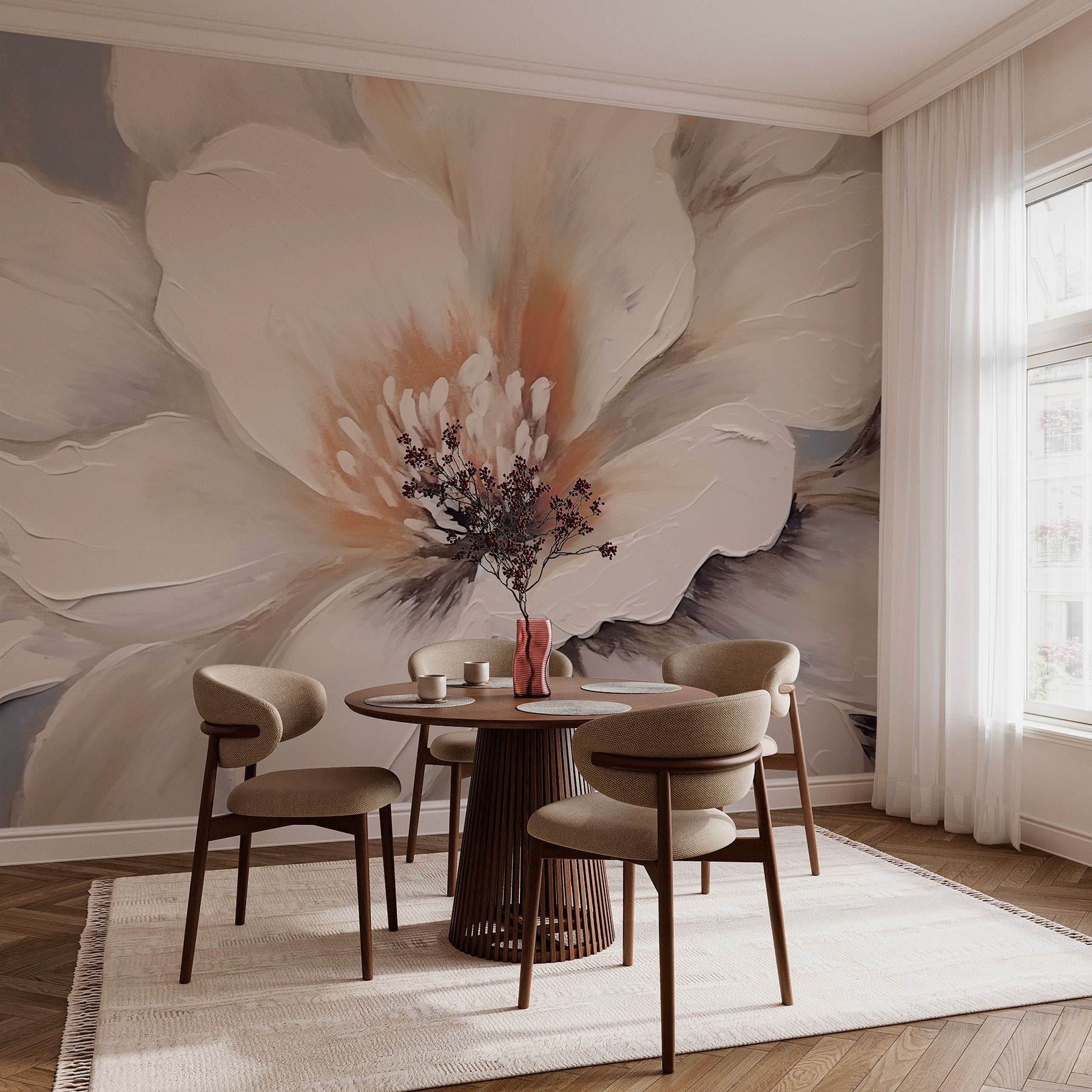 Μεταμορφώστε οποιοδήποτε δωμάτιο σε μια γαλήνια όαση με την τοιχογραφία “Delicate Petals in Soft Hues”. Φανταστείτε να περιπλανηθείτε σε έναν γαλήνιο κήπο, όπου τα αέρινα άνθη ψιθυρίζουν γλυκά μυστικά σε απαλούς τόνους. Αυτή η τοιχογραφία αποτυπώνει αυτή την ονειρική ατμόσφαιρα, φέρνοντας μια βουτιά φύσης στον χώρο σας. Ιδανική για άνετες γωνιές ή ευρύχωρους τοίχους, προσθέτει μια απαλή κομψότητα που καταπραΰνει την ψυχή. Φανταστείτε να κουλουριάζεστε με ένα καλό βιβλίο, περιτριγυρισμένοι από αυτές τις πανέμορφες παιώνιες. Είναι σαν να έχετε ένα μικρό κομμάτι άνοιξης που ανθίζει όλο το χρόνο – δεν απαιτείται πότισμα! Οι τοίχοι σας θα σας ευχαριστήσουν.