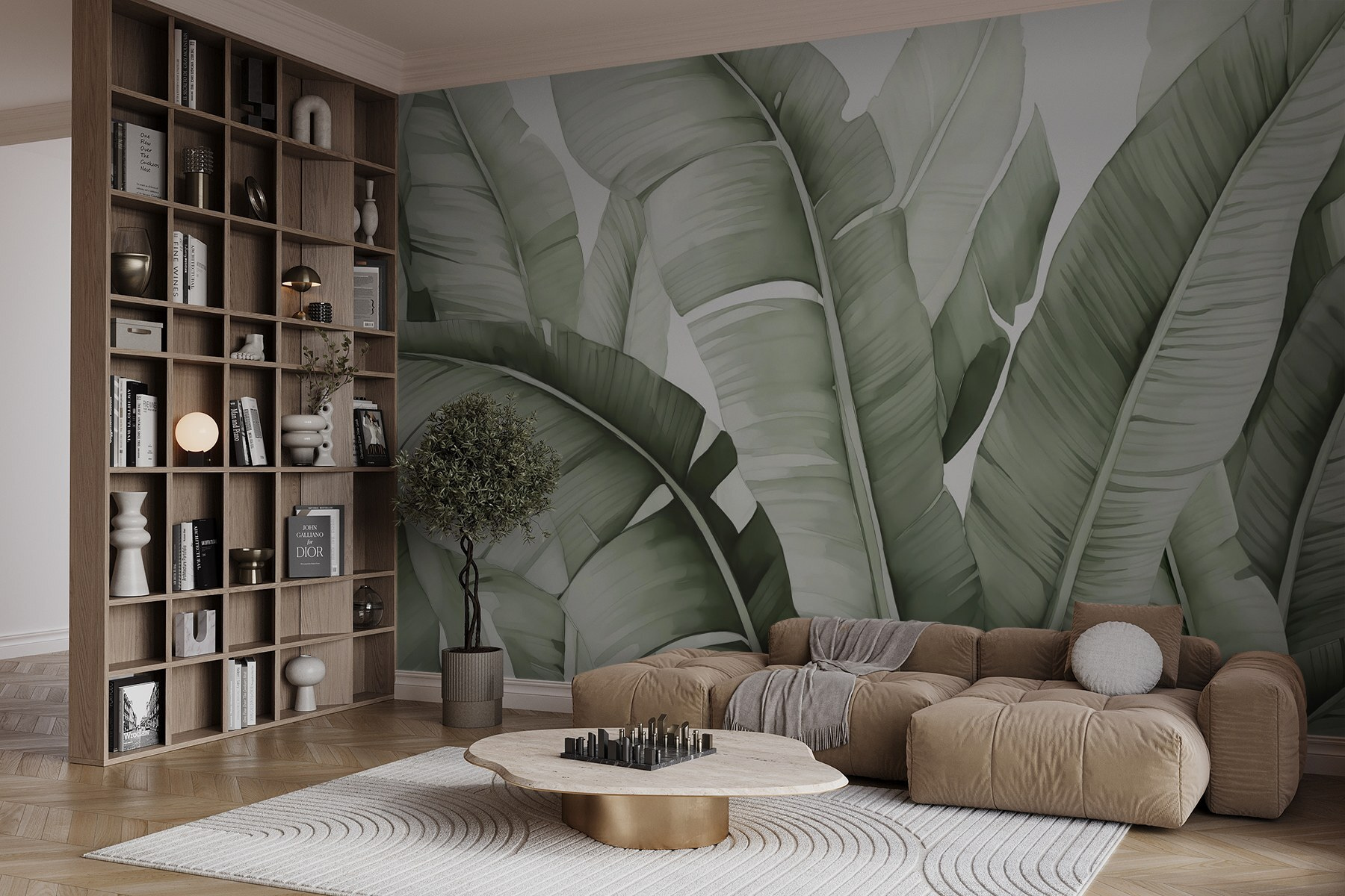 Μεταμορφώστε οποιοδήποτε δωμάτιο σε μια γαλήνια όαση με αυτή την τοιχογραφία με τα καταπράσινα φύλλα. Φανταστείτε να μπαίνετε σε μια ήσυχη τροπική απόδραση μέσα στο σπίτι σας. Κάθε φύλλο μοιάζει να ψιθυρίζει μυστικά της ζούγκλας, προσκαλώντας σας να χαλαρώσετε. Είναι ιδανικό για όσους αναζητούν μια μικρή θεραπεία στη φύση χωρίς να χρειάζονται πράσινο αντίχειρα. Φανταστείτε άνετα βράδια πίνοντας τσάι, περιτριγυρισμένοι από ηρεμιστικά χόρτα που κάνουν το χώρο σας να αισθάνεται ζωντανός. Οι απαλές αποχρώσεις αυτής της τοιχογραφίας δημιουργούν μια αναζωογονητική ατμόσφαιρα, καθιστώντας την ένα εξαιρετικό σκηνικό για όλα τα διακοσμητικά σας όνειρα. Στην υγειά σας για να φέρετε ένα κομμάτι από την ύπαιθρο μέσα!