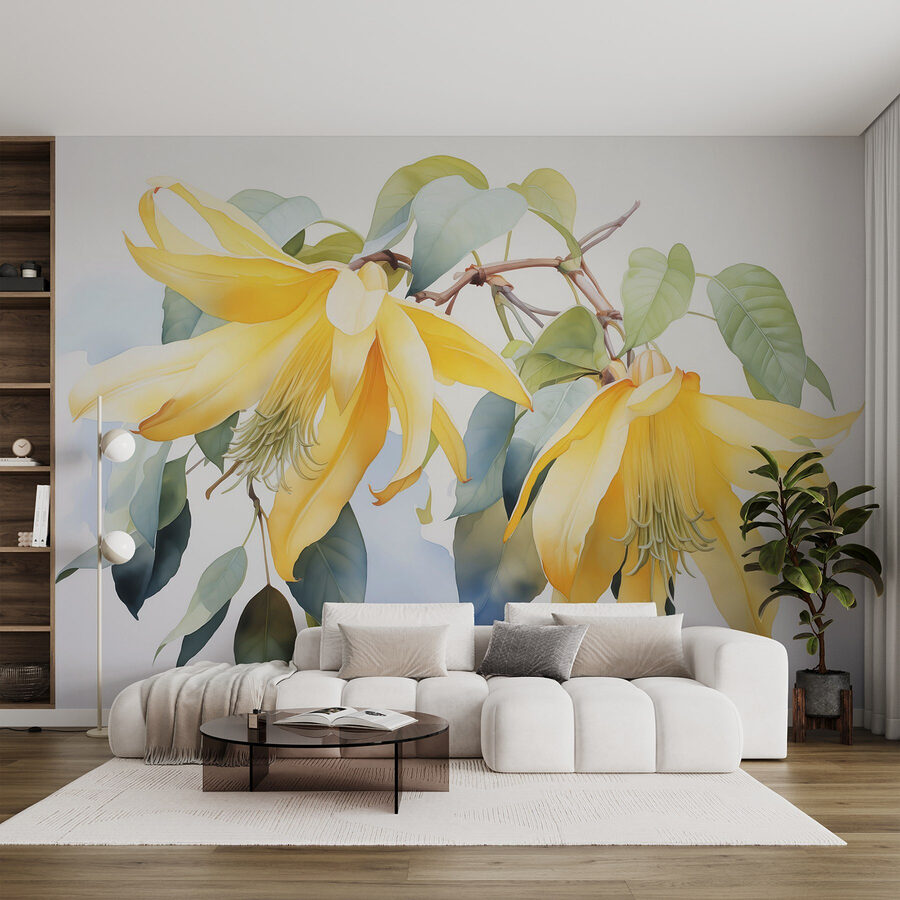 Φωτίστε κάθε δωμάτιο με τις χαρούμενες δονήσεις της τοιχογραφίας “Κίτρινα λουλούδια σε κλαδί”. Φανταστείτε να ξυπνάτε με αυτά τα ηλιόλουστα άνθη κάθε μέρα – σαν ένα μικρό κομμάτι της φύσης μέσα στο σπίτι σας. Ιδανική για σαλόνια, κουζίνες ή εκείνη τη ζεστή γωνιά ανάγνωσης όπου πίνετε τον πρωινό σας καφέ και θαυμάζετε τις καλλιτεχνικές σας επιλογές. Τα απαλά χρώματα και τα χαριτωμένα φύλλα δημιουργούν μια γαλήνια ατμόσφαιρα, κάνοντας δύσκολο να μην χαμογελάσετε. Είναι σαν να φέρνετε λίγη άνοιξη στους εσωτερικούς χώρους, και ποιος δεν χρειάζεται περισσότερη χαρά στη ζωή του; Η ζωντανή γοητεία αυτής της τοιχογραφίας μπορεί να μετατρέψει ακόμη και τον πιο βαρετό τοίχο σε ένα βοτανικό αριστούργημα, προκαλώντας συζητήσεις και φιλοφρονήσεις. Οπότε, εμπρός, δώστε στο χώρο σας ένα άγγιγμα φύσης – είναι απλά ο τρόπος του τοίχου να πει: “Ας κάνουμε τη ζωή λίγο πιο φωτεινή!”