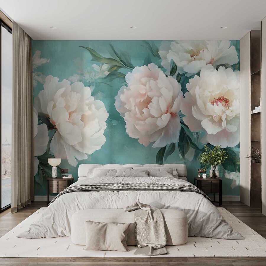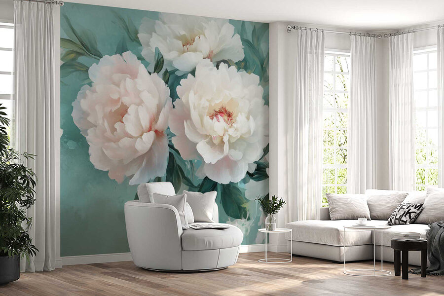 Φωτίστε τους κενούς τοίχους με αυτή την εκπληκτική τοιχογραφία με λευκές παιώνιες, ιδανική για όποιον θέλει λίγη λουλουδένια μαγεία στο χώρο του. Φανταστείτε να μπαίνετε σε ένα δωμάτιο που μοιάζει με κήπο σε πλήρη άνθιση – απαλά πέταλα που παρακαλούν να τα θαυμάσετε. Οι απαλές αποχρώσεις του τιρκουάζ θα σας θυμίσουν καλοκαιρινούς ουρανούς, κάνοντας ακόμα και την πιο βροχερή μέρα να μοιάζει με αεράκι. Ποιος δεν θα ήθελε να πιει τον καφέ του περιτριγυρισμένος από αυτές τις ομορφιές; Είναι σαν να φέρνετε λίγη από τη φύση στους εσωτερικούς χώρους, χωρίς να απαιτείται πράσινος αντίχειρας. Πιστέψτε με, αυτή η τοιχογραφία θα τραβήξει κομπλιμέντα πιο γρήγορα από ένα ηλιοτρόπιο σε ένα χωράφι!