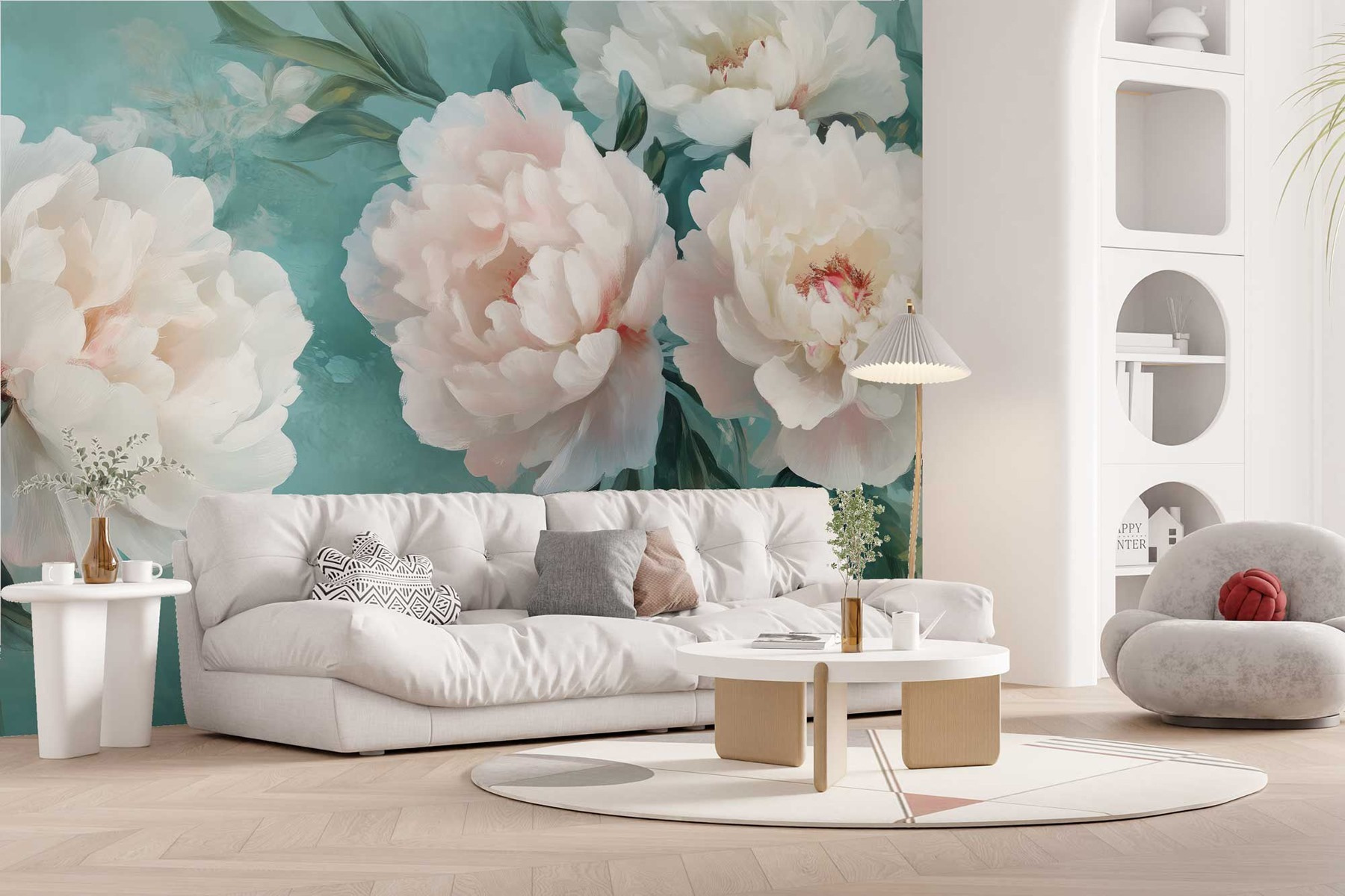 Φωτίστε τους κενούς τοίχους με αυτή την εκπληκτική τοιχογραφία με λευκές παιώνιες, ιδανική για όποιον θέλει λίγη λουλουδένια μαγεία στο χώρο του. Φανταστείτε να μπαίνετε σε ένα δωμάτιο που μοιάζει με κήπο σε πλήρη άνθιση – απαλά πέταλα που παρακαλούν να τα θαυμάσετε. Οι απαλές αποχρώσεις του τιρκουάζ θα σας θυμίσουν καλοκαιρινούς ουρανούς, κάνοντας ακόμα και την πιο βροχερή μέρα να μοιάζει με αεράκι. Ποιος δεν θα ήθελε να πιει τον καφέ του περιτριγυρισμένος από αυτές τις ομορφιές; Είναι σαν να φέρνετε λίγη από τη φύση στους εσωτερικούς χώρους, χωρίς να απαιτείται πράσινος αντίχειρας. Πιστέψτε με, αυτή η τοιχογραφία θα τραβήξει κομπλιμέντα πιο γρήγορα από ένα ηλιοτρόπιο σε ένα χωράφι!