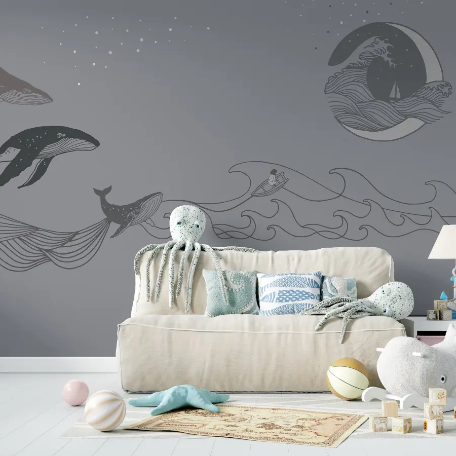 Βυθιστείτε στον γαλήνιο κόσμο της ζωής των ωκεανών με αυτή την εκπληκτική τοιχογραφία φάλαινας, που επιπλέει με χάρη σε ένα απαλό γκρι φόντο. Φανταστείτε να μπαίνετε στο χώρο σας και να αισθάνεστε αμέσως τις ηρεμιστικές δονήσεις – σαν οι ψίθυροι του ωκεανού να είναι ακριβώς στα χέρια σας. Αυτές οι φάλαινες, σχεδιασμένες με τόση κομψότητα, φέρνουν ένα περιπετειώδες πνεύμα που μπορεί να πυροδοτήσει ονειροπολήσεις για τη θάλασσα. Φανταστείτε μια ζεστή νύχτα, ίσως πίνοντας τσάι, ενώ τα απαλά κύματα χορεύουν στον τοίχο σας. Αυτή η τοιχογραφία είναι ιδανική για να δημιουργήσετε μια γαλήνια γωνιά ή να προσθέσετε μια βουτιά θαλασσινής γοητείας χωρίς το βρεγμένο μαγιό! Δεν είναι απλώς διακόσμηση, είναι μια πρόσκληση για να ονειρευτείτε.