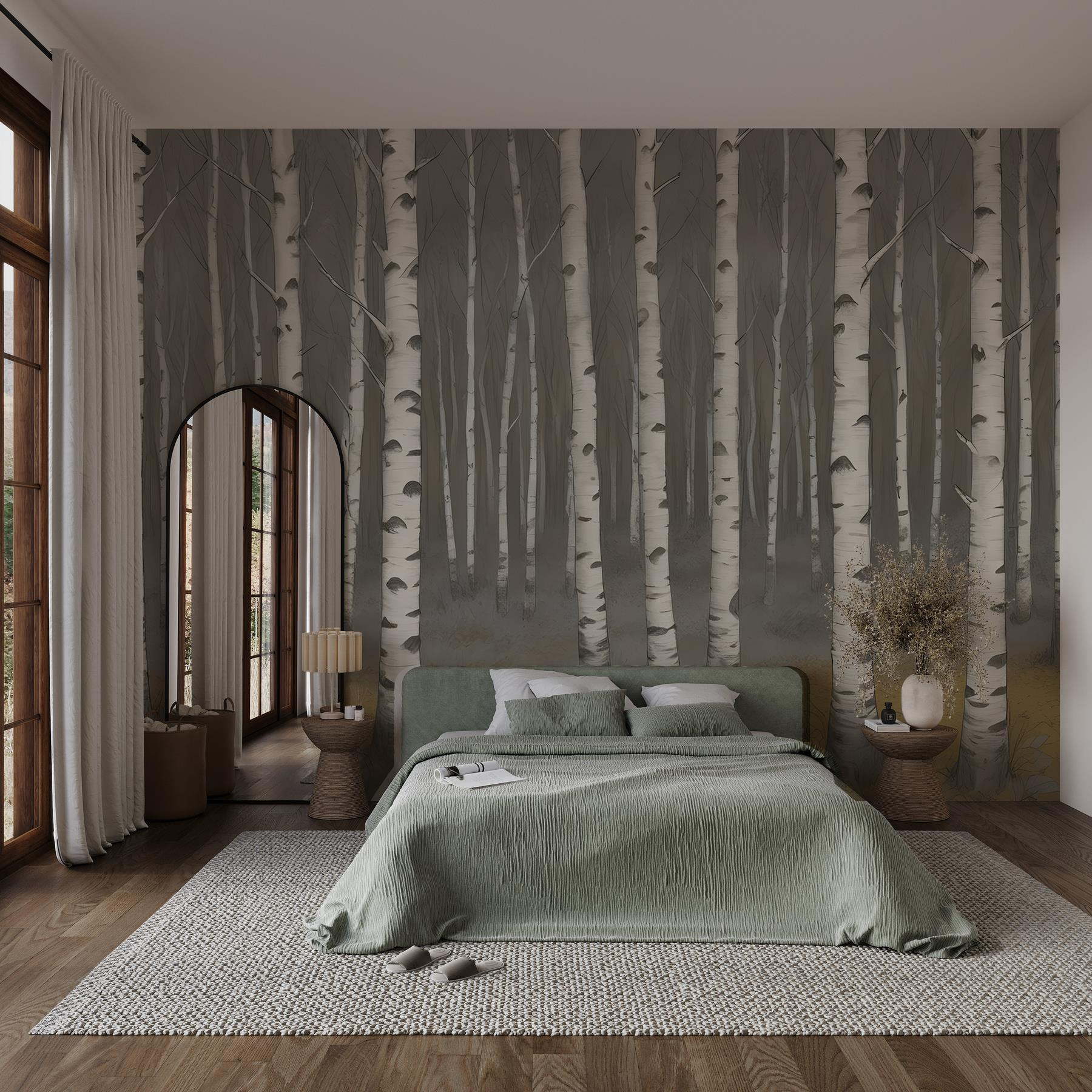 Μεταμορφώστε οποιοδήποτε δωμάτιο σε μια γαλήνια απόδραση με αυτή τη μαγευτική τοιχογραφία με τα δέντρα σημύδας. Είναι σαν να φέρνετε ένα γαλήνιο δάσος μέσα στο σπίτι σας. Φανταστείτε να πίνετε τσάι ένα ζεστό απόγευμα, περιτριγυρισμένοι από απαλούς λευκούς κορμούς, καθώς λικνίζονται απαλά σε ένα φανταστικό αεράκι. Τα απαλά χρώματα δημιουργούν μια ηρεμιστική ατμόσφαιρα, ιδανική για ένα υπνοδωμάτιο ή μια γωνιά ανάγνωσης. Επιπλέον, υπάρχει κάτι μαγικό στην απλότητα της φύσης, έτσι δεν είναι; Ετοιμαστείτε να νιώθετε καθημερινά την ειρηνική ενέργεια του δάσους – χωρίς τα ενοχλητικά έντομα ή τις λασπωμένες μπότες. Αγκαλιάστε την ομορφιά της φύσης στους εσωτερικούς χώρους και δείτε τον χώρο σας να ζωντανεύει!