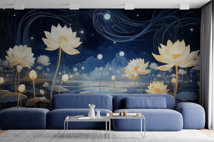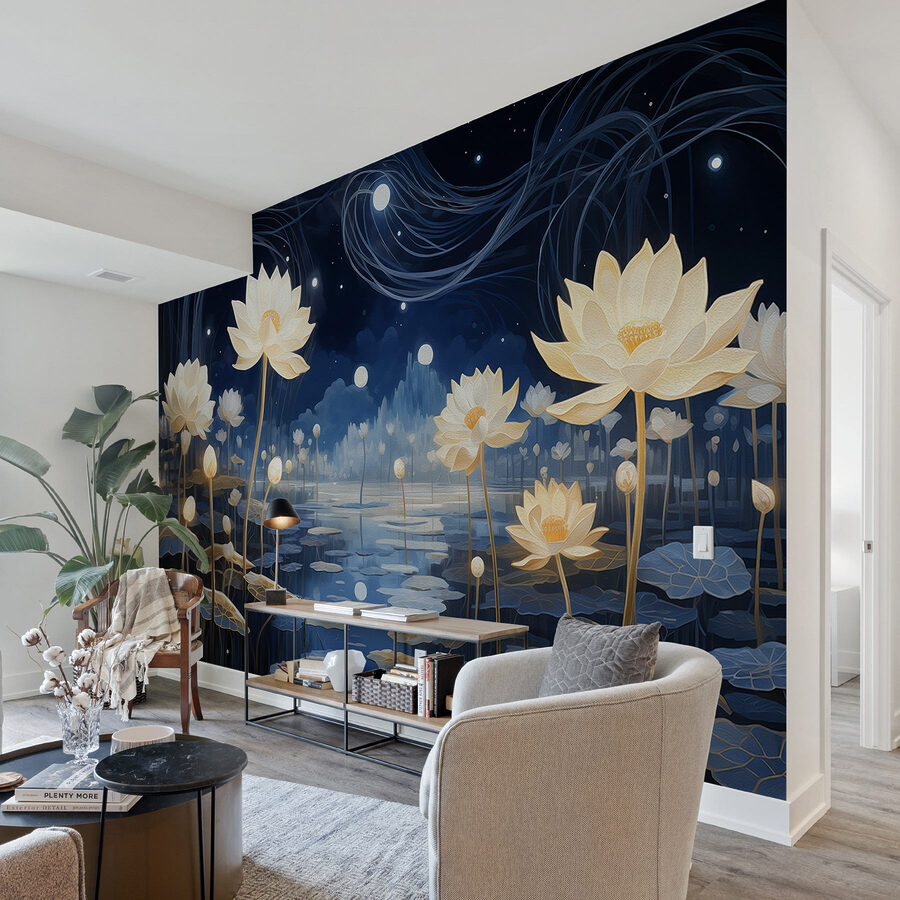 Μεταμορφώστε το χώρο σας με αυτή τη μαγευτική τοιχογραφία, όπου τα λουλούδια ανθίζουν γαλήνια σε μια ονειρική λίμνη. Φανταστείτε να μπαίνετε καθημερινά σε μια ήρεμη απόδραση – αυτά τα λεπτά πέταλα και το λαμπερό νερό δημιουργούν μια ατμόσφαιρα που είναι τόσο ηρεμιστική όσο και αναζωογονητική. Ιδανικό για ένα σαλόνι ή μια ζεστή γωνιά ανάγνωσης, αυτό το σχέδιο σας προσκαλεί να σταματήσετε και να αναπνεύσετε, σχεδόν σαν τα λουλούδια να σας ψιθυρίζουν γλυκά μυστικά. Οι φίλοι σίγουρα θα σας ρωτήσουν πού βρήκατε ένα τόσο εντυπωσιακό κομμάτι και ίσως να νιώσετε ακόμη και την έμπνευση να διοργανώσετε ένα πάρτι τσαγιού ή μια ζεστή βραδιά ταινίας μόνο και μόνο για να το επιδείξετε. Μια υπέροχη προσθήκη που μπορεί να κάνει οποιονδήποτε τοίχο να ξεπηδήσει με γοητεία και προσωπικότητα!