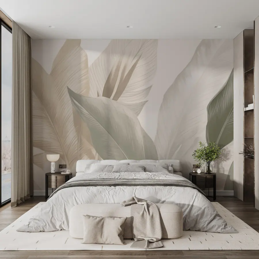 Η μεταμόρφωση ενός χώρου με την τοιχογραφία “Απαλά φύλλα σε ουδέτερους τόνους” είναι σαν να προσκαλείτε ένα απαλό αεράκι στο εσωτερικό. Φανταστείτε να μπαίνετε σε ένα δωμάτιο όπου τα ηρεμιστικά φυλλώματα σας τυλίγουν με ζεστασιά. Η καταπραϋντική παλέτα από σιωπηλά πράσινα και απαλά καφέ χρώματα δημιουργεί μια γαλήνια απόδραση, ιδανική για ονειροπολήσεις ή πρωινές τελετουργίες καφέ. Είναι σαν να έχετε ένα άνετο δάσος στο σπίτι σας χωρίς τα έντομα! Είτε πρόκειται για ένα μοντέρνο σαλόνι είτε για ένα ήσυχο υπνοδωμάτιο, αυτή η τοιχογραφία ψιθυρίζει χαλάρωση. Οι μικρές λεπτομέρειες -όπως οι απαλές υφές των φύλλων- πραγματικά σας προσελκύουν. Απλά φανταστείτε να κουλουριάζεστε με ένα βιβλίο, περιτριγυρισμένοι από αυτή την εμπνευσμένη από τη φύση ομορφιά. Ποιος δεν θα αισθανόταν λίγο πιο ζεν;