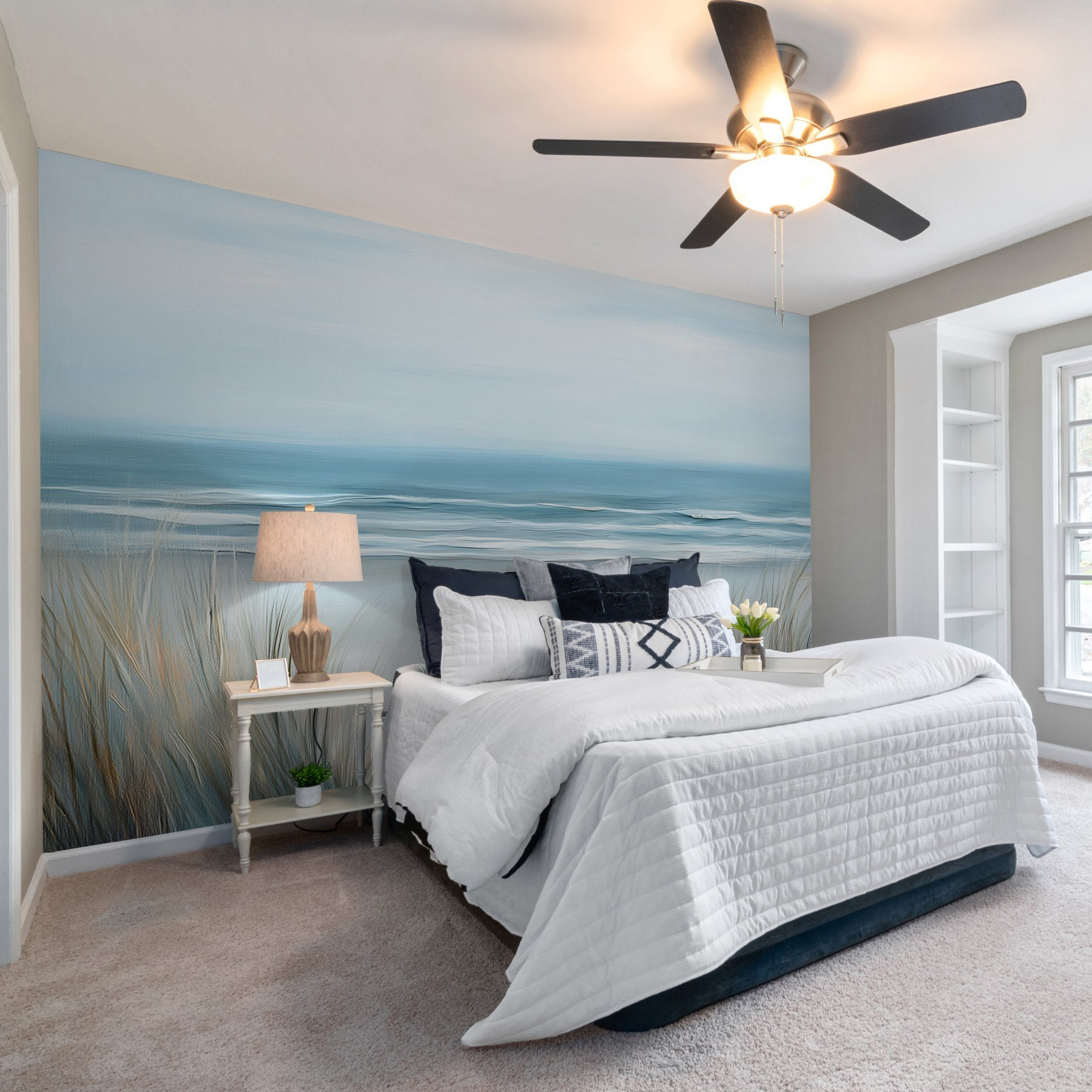 Φανταστείτε να μπαίνετε σε ένα δωμάτιο που μοιάζει σαν να έχει μόλις εισέλθει ένα απαλό θαλασσινό αεράκι. Αυτή η τοιχογραφία τοίχου, “Παραλία με γρασίδι και κύματα”, κάνει ακριβώς αυτό. Αποτυπώνει τη γαλήνια ομορφιά της ακτής, με απαλά χρώματα που ψιθυρίζουν χαλάρωση. Φανταστείτε να περνάτε χαλαρά απογεύματα ατενίζοντας τα κύματα, νιώθοντας τις έγνοιες σας να φεύγουν σαν πατημασιές στην άμμο. Αυτά τα ντελικάτα χόρτα λικνίζονται σαν να σας προσκαλούν για μια βόλτα κατά μήκος της ακτής. Είναι μια τέλεια πινελιά για μια ζεστή γωνιά ανάγνωσης ή μια φωτεινή τραπεζαρία – όπου λίγη ατμόσφαιρα παραλίας μπορεί να μετατρέψει κάθε μέρα σε μίνι διακοπές. Ιδανικό για τους ονειροπόλους και τους λάτρεις της παραλίας!