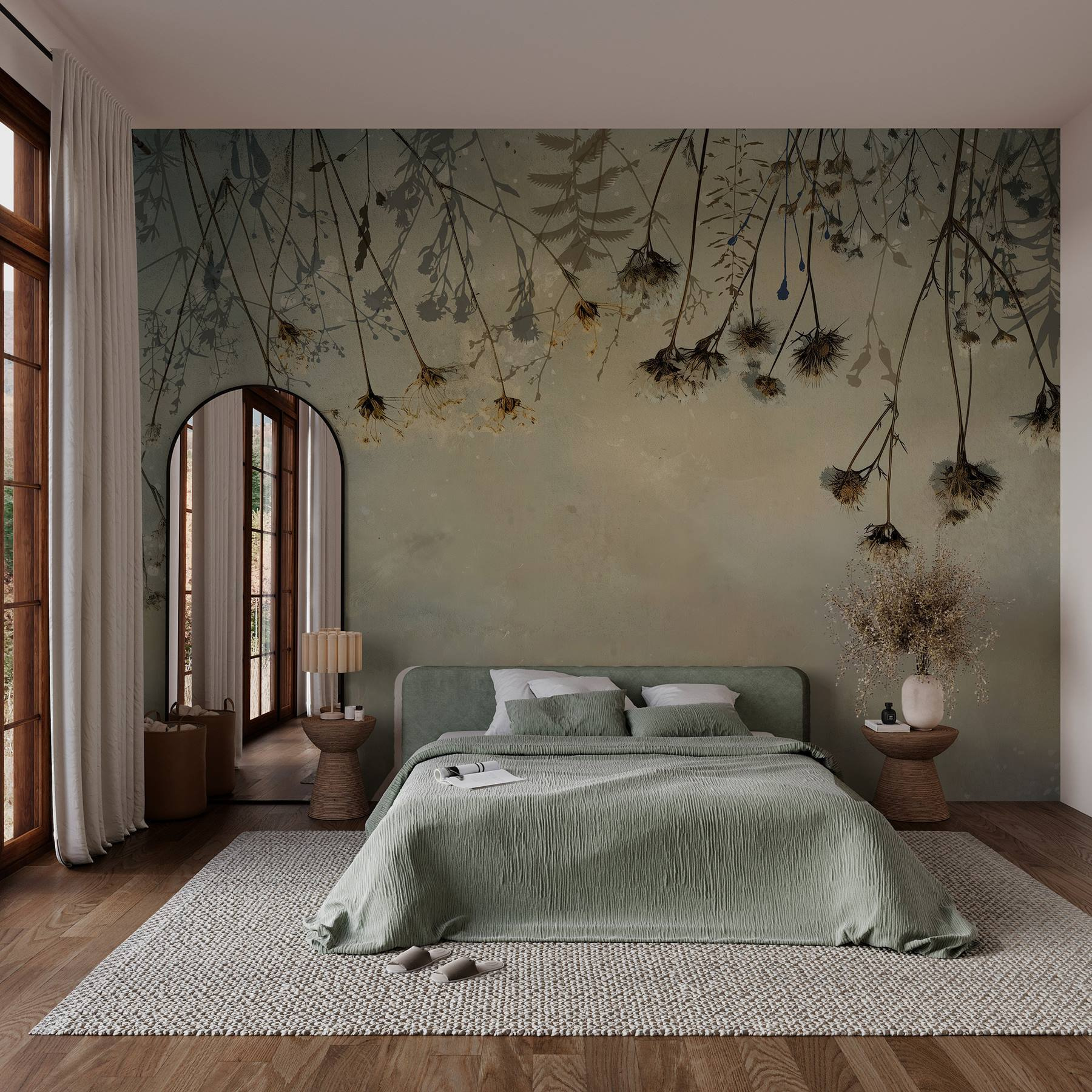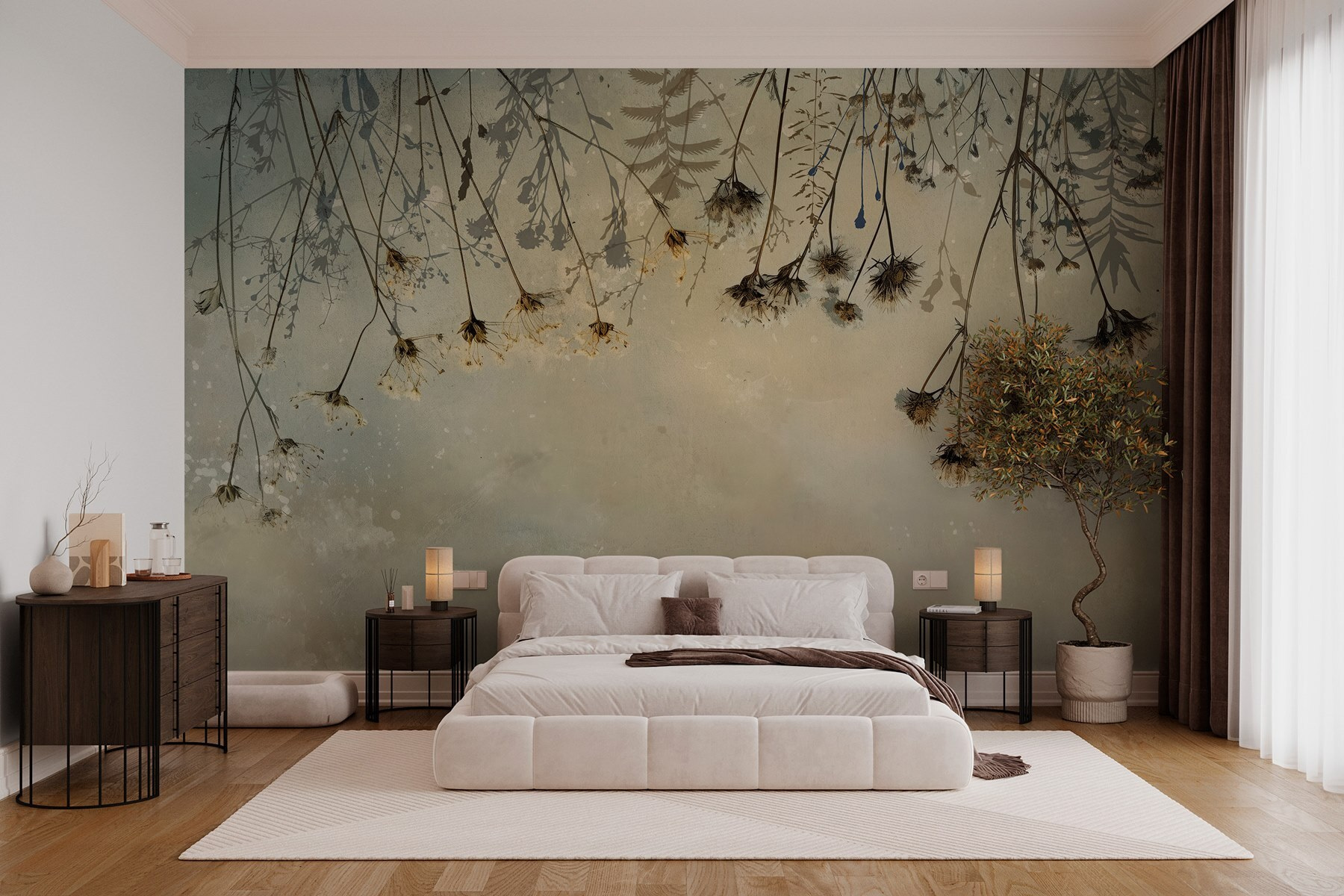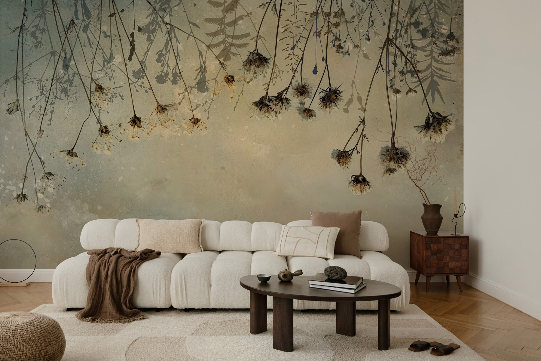 Μεταμορφώστε οποιονδήποτε τοίχο σε μια ονειρική απόδραση με την τοιχογραφία “Αποξηραμένα λουλούδια σε κλαδί”. Αυτό το κομμάτι αποτυπώνει την ουσία της φύσης, με τα ντελικάτα λουλούδια να απλώνονται με χάρη σε ένα απαλό, καταπραϋντικό φόντο. Φανταστείτε να πίνετε καφέ, νιώθοντας τη ζεστασιά του ήλιου, ενώ ατενίζετε αυτή την ειρηνική σκηνή. Φέρνει μια ήρεμη ατμόσφαιρα, ιδανική για άνετες γωνιές ή ακόμα και για μια δραματική δήλωση στο σαλόνι. Επιπλέον, είναι σαν να φέρνετε την ύπαιθρο μέσα – χωρίς το φτέρνισμα. Ιδανικό για όσους θέλουν ένα κομμάτι γαλήνιας φύσης, χωρίς τη συντήρηση των πραγματικών φυτών!