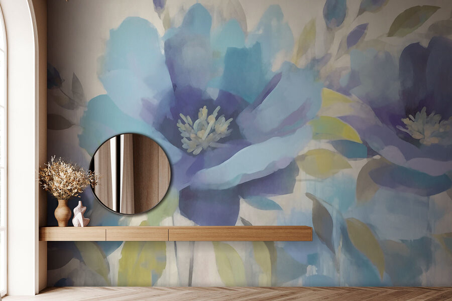 Μεταμορφώστε οποιοδήποτε δωμάτιο σε μια γαλήνια απόδραση με αυτή την όμορφη τοιχογραφία με λουλούδια και φύλλα. Φανταστείτε να μπαίνετε στο χώρο σας και να σας υποδέχονται μεγάλα, απαλά άνθη σε παστέλ μπλε και μοβ χρώματα, σαν μια απαλή αγκαλιά από την ίδια τη φύση. Είναι ιδανικό για εκείνες τις ημέρες που η ζωή σας μοιάζει λίγο πολύ ταραχώδης. Απλά φανταστείτε να κουλουριάζεστε στον καναπέ, με ένα φλιτζάνι τσάι στο χέρι, ενώ τα λουλούδια μοιάζουν να λικνίζονται ελαφρώς στον τοίχο – σχεδόν σαν να χορεύουν. Είτε πρόκειται για ένα άνετο υπνοδωμάτιο είτε για ένα ζωντανό σαλόνι, αυτή η τοιχογραφία προσθέτει αβίαστα μια πινελιά κομψότητας και ιδιοτροπίας. Επιπλέον, δεν απαιτείται πότισμα!