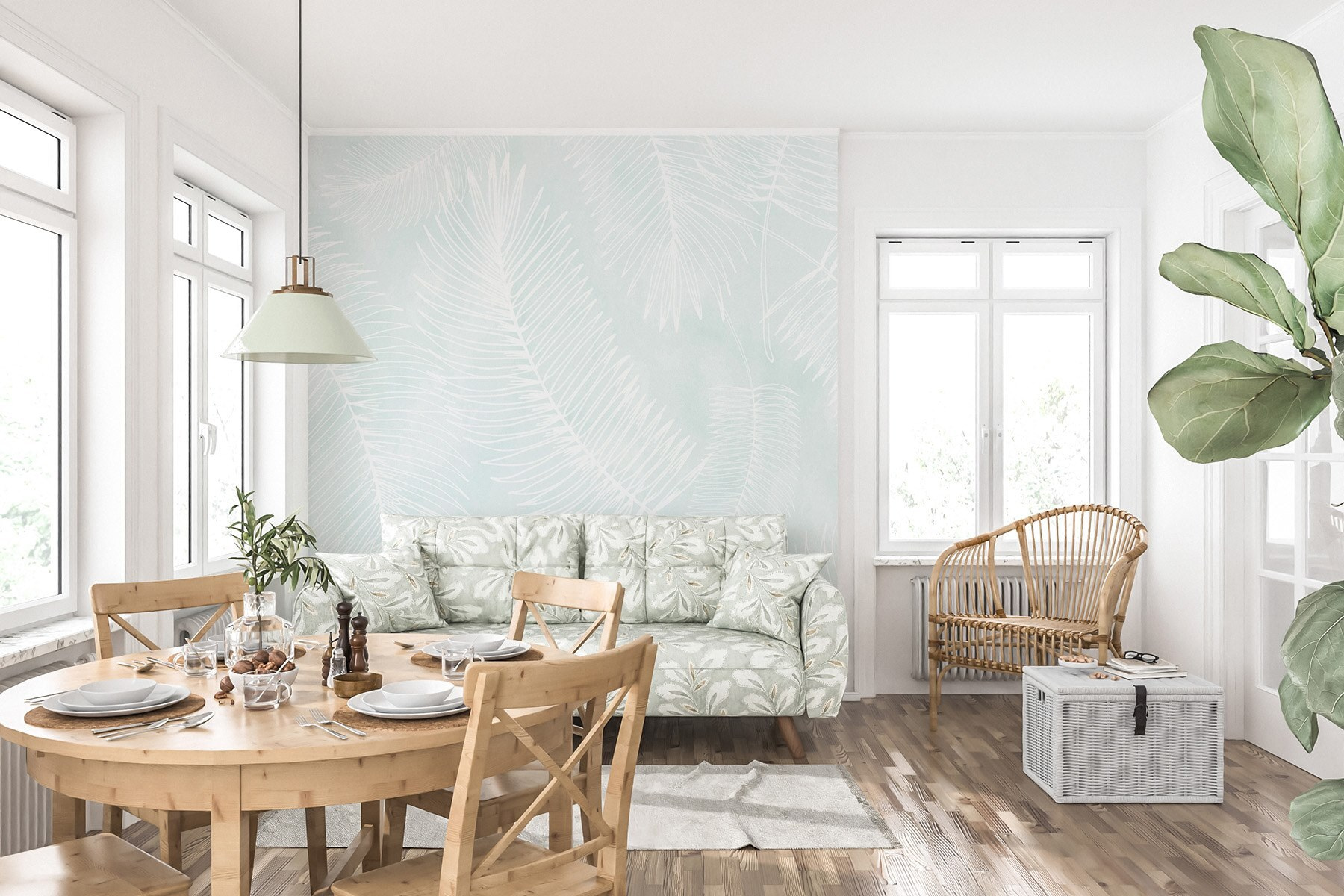 Μεταμορφώστε έναν απλό χώρο σε ένα γαλήνιο καταφύγιο με το “Ταπετσαρίες White Pattern of Leaves”. Είναι σαν να φέρνετε μια ανάσα φρέσκου αέρα κατευθείαν στο σπίτι σας – χωρίς τη γύρη! Αυτό το κομψό σχέδιο διαθέτει λεπτεπίλεπτα λευκά φύλλα που αιωρούνται σε ένα απαλό, γαλήνιο φόντο. Ιδανικό για τη δημιουργία αυτής της ηρεμιστικής τροπικής ατμόσφαιρας, ψιθυρίζει χαλάρωση. Φανταστείτε άνετα βράδια, πίνοντας τσάι, με αυτά τα απαλά μοτίβα να σας τυλίγουν με άνεση. Όχι πολύ φανταχτερό, απλά ένα χαλαρωτικό άγγιγμα που μοιάζει σαν να μπήκε μέσα η φύση. Ιδανικό για κάθε δωμάτιο – απλώς μην περιμένετε να ποτίσει τα φυτά σας, όμως!