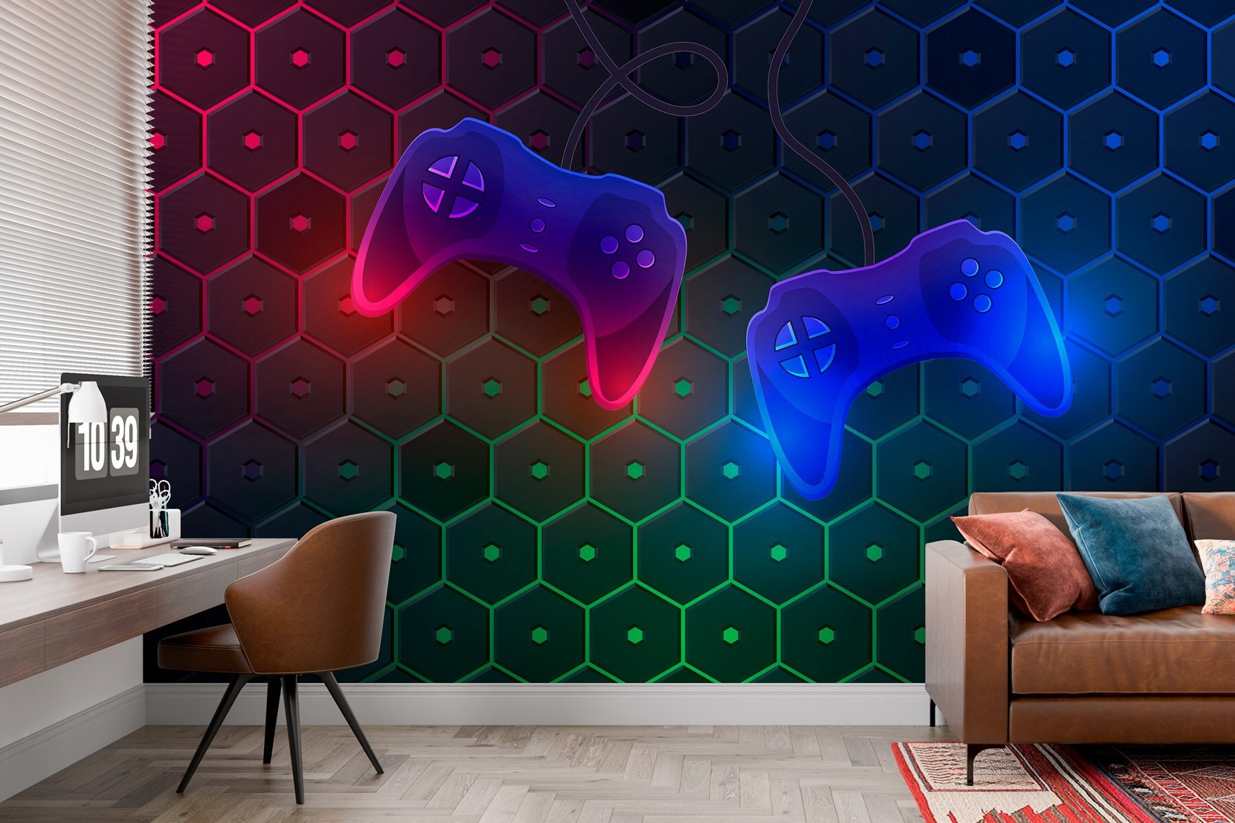 Μεταμορφώστε το χώρο σας με μια έκρηξη δημιουργικότητας! Αυτή η μαγευτική τοιχογραφία τοίχου, με ζωντανά χειριστήρια παιχνιδιών σε εξαγωνικό φόντο, είναι σαν μια παιχνιδιάρικη πρόσκληση για να βουτήξετε στον κόσμο των παιχνιδιών. Φανταστείτε να κάνετε παρέα με φίλους, με τα γέλια να αντηχούν καθώς προκαλείτε ο ένας τον άλλον, όλα υπό τη λάμψη αυτών των πολύχρωμων χειριστηρίων. Δεν είναι απλώς διακόσμηση, είναι μια ατμόσφαιρα – ένα διασκεδαστικό στοιχείο συζήτησης που φέρνει ενέργεια σε κάθε δωμάτιο. Ο συνδυασμός τολμηρών χρωμάτων και γεωμετρικών μοτίβων προσθέτει μια μοντέρνα πινελιά που διατηρεί τα πράγματα φρέσκα. Ιδανικό για τις σπηλιές των παικτών, τα παιδικά δωμάτια ή κάθε χώρο που επιθυμεί μια πινελιά προσωπικότητας. Θα χαμογελάτε κάθε φορά που θα περνάτε – είναι σχεδόν σαν η τοιχογραφία να σας προκαλεί για μια ρεβάνς!