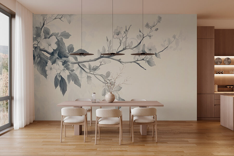 Μεταμορφώστε το χώρο σας με αυτή τη μαγευτική τοιχογραφία τοίχου, “Κλάδος με λουλούδια και φύλλα”. Φανταστείτε να περπατάτε σε έναν γαλήνιο ιαπωνικό κήπο μέσα στο σαλόνι σας – ευτυχισμένο, σωστά; Λεπτά απαλά άνθη και περίπλοκα φύλλα αιωρούνται στον τοίχο, προσδίδοντας μια πινελιά ηρεμίας που είναι τόσο αναζωογονητική όσο ένα πρωινό αεράκι. Είναι σαν έργο τέχνης της φύσης, που φωτίζει αβίαστα κάθε βαρετή γωνιά. Ιδανικό για ονειροπολήσεις ή άνετα βράδια, προσκαλεί ζεστασιά και χαλάρωση. Κάθε ματιά μπορεί απλώς να πυροδοτήσει μια ανάμνηση ενός υπέροχου περιπάτου στον κήπο ή εκείνη τη φορά που χάσατε την αίσθηση του χρόνου ενώ θαυμάζατε τα λουλούδια. Μιλάμε για μια μικρή όαση!