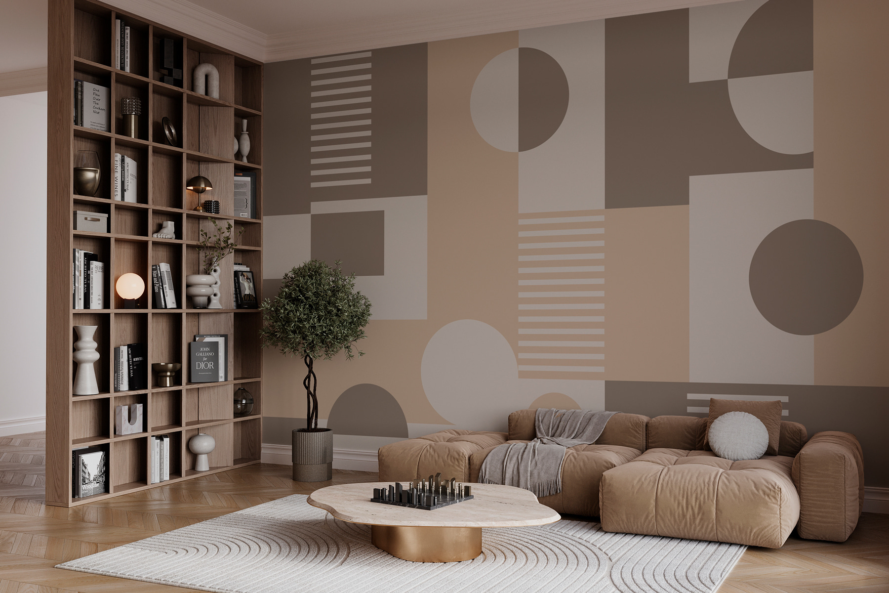Μεταμορφώστε οποιοδήποτε δωμάτιο με αυτή την κομψή τοιχογραφία τοίχου που διαθέτει ένα παιχνιδιάρικο μείγμα γεωμετρικών σχημάτων. Οι απαλές, γήινες αποχρώσεις δημιουργούν μια ηρεμιστική ατμόσφαιρα, ιδανική για χαλαρωτικά βράδια ή χαρούμενες συγκεντρώσεις. Φανταστείτε να πίνετε τον καφέ σας ενώ το φως χορεύει πάνω σε αυτές τις καθαρές γραμμές, κάνοντας τον χώρο να αισθάνεται ζωντανός. Κάθε σχήμα μοιάζει να λέει μια μικρή ιστορία – από πού προήλθε αυτός ο κύκλος; Είναι ένα φεγγάρι; Ένα άνετο πιάτο πρωινού; Ιδανικό για ένα σαλόνι ή ένα γραφείο στο σπίτι, κεντρίζει τη δημιουργικότητα χωρίς να κατακλύζει τις αισθήσεις. Είναι σαν να έχετε ένα κομμάτι σύγχρονης τέχνης, αλλά πολύ πιο εύκολο να το κρεμάσετε!