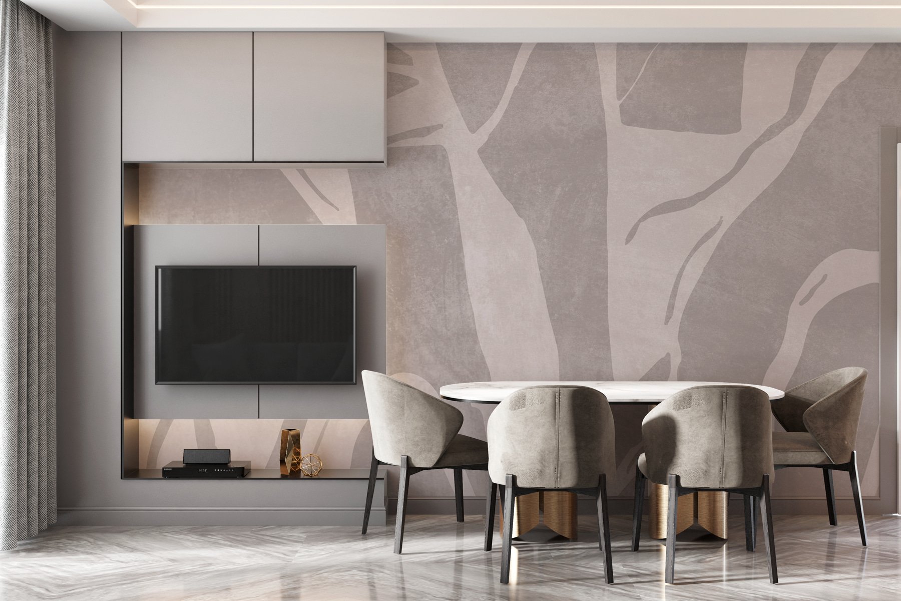 Ιδανικό για άνετες γωνιές ή εκτεταμένους χώρους, προσθέτει μια πινελιά εκλέπτυνσης χωρίς να προσπαθεί πολύ σκληρά. Είτε πίνετε καφέ είτε βυθίζεστε σε ένα καλό βιβλίο, αυτή η τοιχογραφία κάνει κάθε στιγμή να νιώθετε ξεχωριστή. Δεν είναι απλώς μια ταπετσαρία, είναι μια εμπειρία που ψιθυρίζει: “Καλώς ήρθατε στο σπίτι”.