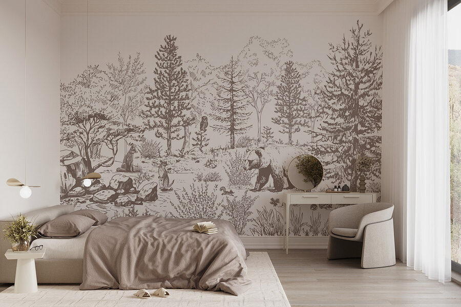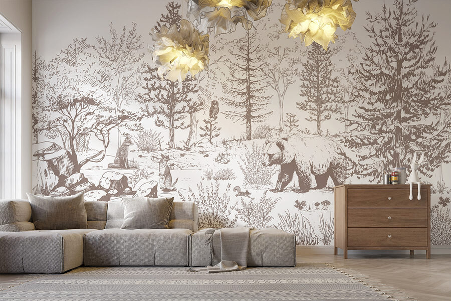 Μεταμορφώστε το χώρο σας σε ένα άνετο δασικό καταφύγιο με την τοιχογραφία “Bear Walking in the Woods”. Φανταστείτε να πίνετε τον πρωινό σας καφέ, ενώ αυτή η μεγαλόπρεπη αρκούδα περπατά μέσα σε ένα γαλήνιο δάσος, με παιχνιδιάρικα ζωάκια και δέντρα που ψιθυρίζουν. Είναι σαν να έχετε τη φύση στο σαλόνι σας, χωρίς τα κουνούπια! Αυτή η τοιχογραφία προσθέτει μια πινελιά περιπέτειας και ηρεμίας, προκαλώντας ονειροπολήσεις για πεζοπορίες στο δάσος και βράδια δίπλα στη φωτιά. Ιδανική για τους λάτρεις της φύσης ή για όσους θέλουν να ξεφύγουν από την καθημερινή φασαρία. Γιατί, λοιπόν, να μην απελευθερώσετε τον εσωτερικό σας εξερευνητή; Οι τοίχοι σας αξίζουν να αναπνεύσουν λίγη μαγεία!