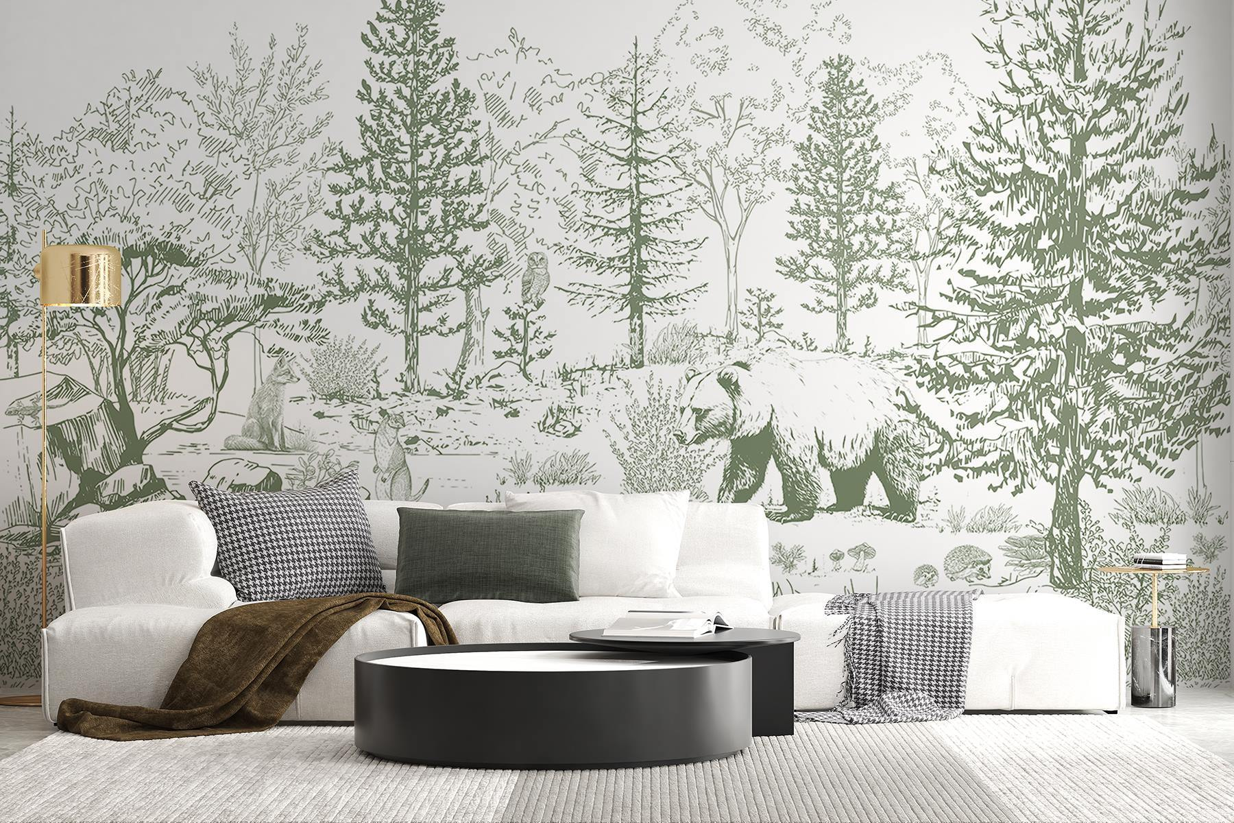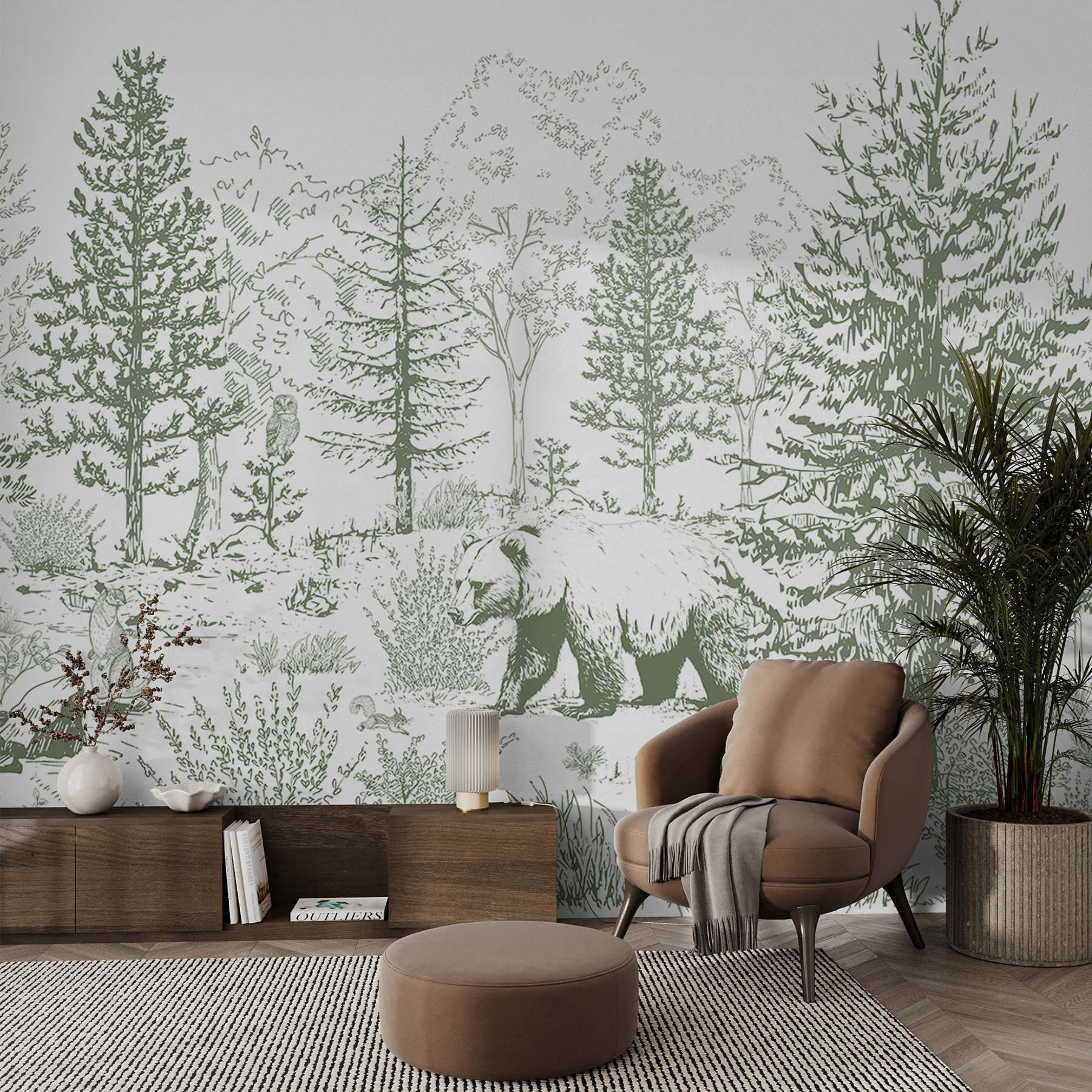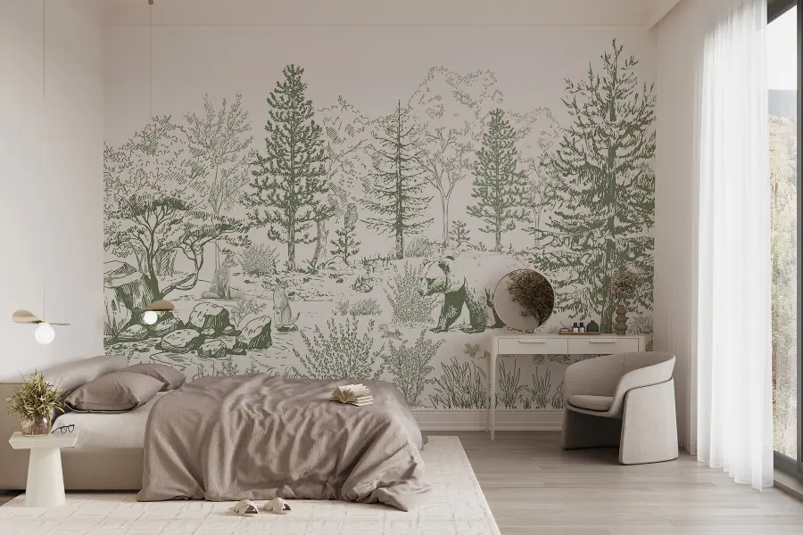 Φανταστείτε να μπαίνετε σε μια ζεστή καμπίνα, όπου η ηρεμία του δάσους σας περιβάλλει σαν μια ζεστή αγκαλιά. Αυτή η τοιχογραφία, με μια αρκούδα να ελίσσεται μέσα σε πλούσια βλάστηση, φέρνει αυτή την αίσθηση κατευθείαν στο χώρο σας. Οι απαλές γραμμές και οι γήινοι τόνοι δημιουργούν μια φιλόξενη ατμόσφαιρα, ιδανική για ονειροπολήσεις ή άνετες συζητήσεις. Είναι σαν η αρκούδα να κρυφοκοιτάζει από το παράθυρό σας μια μέρα, έτοιμη να μοιραστεί ιστορίες από το δάσος. Μεταμορφώστε οποιοδήποτε δωμάτιο σε ένα καταφύγιο της φύσης – ιδανικό για το σαλόνι ή το υπνοδωμάτιο, όπου η χαλάρωση συναντά την περιπέτεια. Έτσι, πάρτε το φλιτζάνι τσάι και αφήστε αυτή την τοιχογραφία να σας εμπνεύσει λίγη περιπλάνηση στο σπίτι σας.