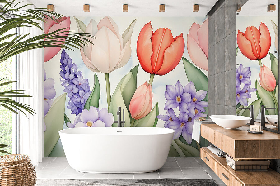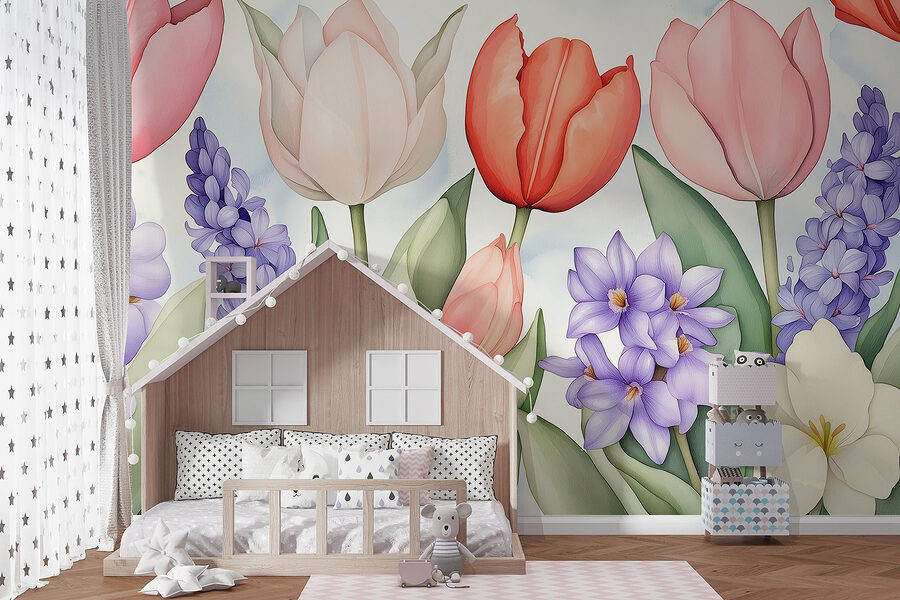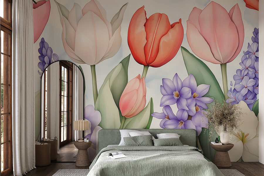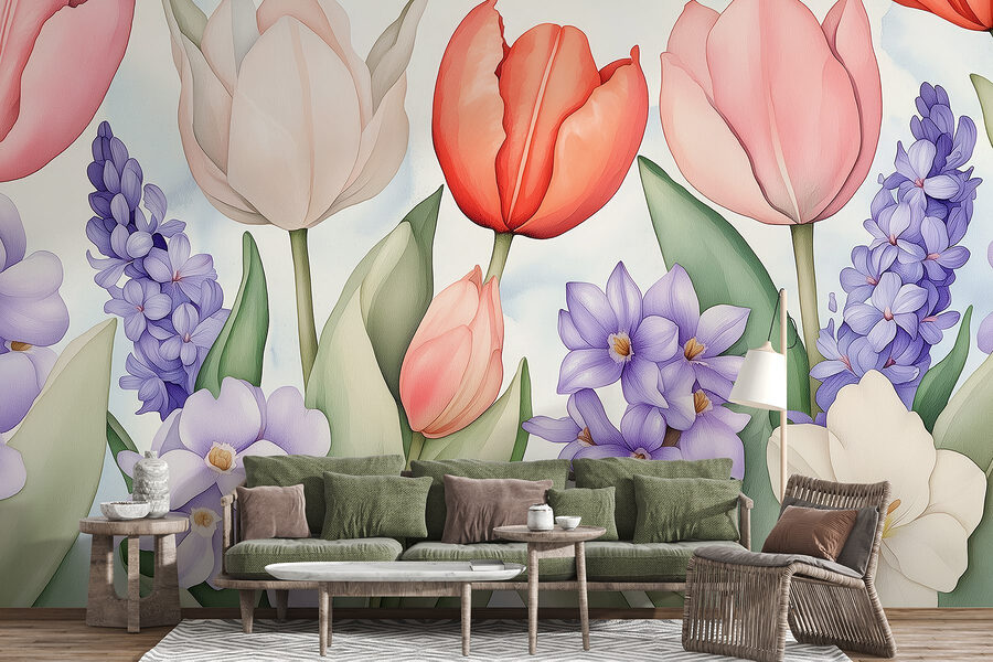 Φανταστείτε να μπαίνετε σε ένα δωμάτιο που μοιάζει με άνοιξη όλο το χρόνο. Αυτή η γοητευτική τοιχογραφία, γεμάτη ζωντανά άνθη και πλούσια φύλλα, κάνει ακριβώς αυτό! Με την εκπληκτική σειρά από τουλίπες και λεπτεπίλεπτα άνθη, είναι σαν να έχετε έναν μίνι κήπο στον τοίχο σας. Τα απαλά χρώματα φέρνουν μια αίσθηση ηρεμίας, καθιστώντας την ιδανική για μια ζεστή γωνιά ανάγνωσης ή ένα ζωντανό σαλόνι. Οι καλεσμένοι θα νιώσουν αυτή τη ζεστή, χνουδωτή ατμόσφαιρα και ίσως ακόμη και να ξεκινήσουν το κυνήγι για το πλησιέστερο ανθοπωλείο! Και ε, είναι ένας πολύ καλός τρόπος για να εντυπωσιάσετε τους φίλους σας χωρίς την ταλαιπωρία του ποτίσματος. Είτε είστε φανατικοί των λουλουδιών είτε απλώς αγαπάτε μια πινελιά χρώματος, αυτή η τοιχογραφία σας καλύπτει!