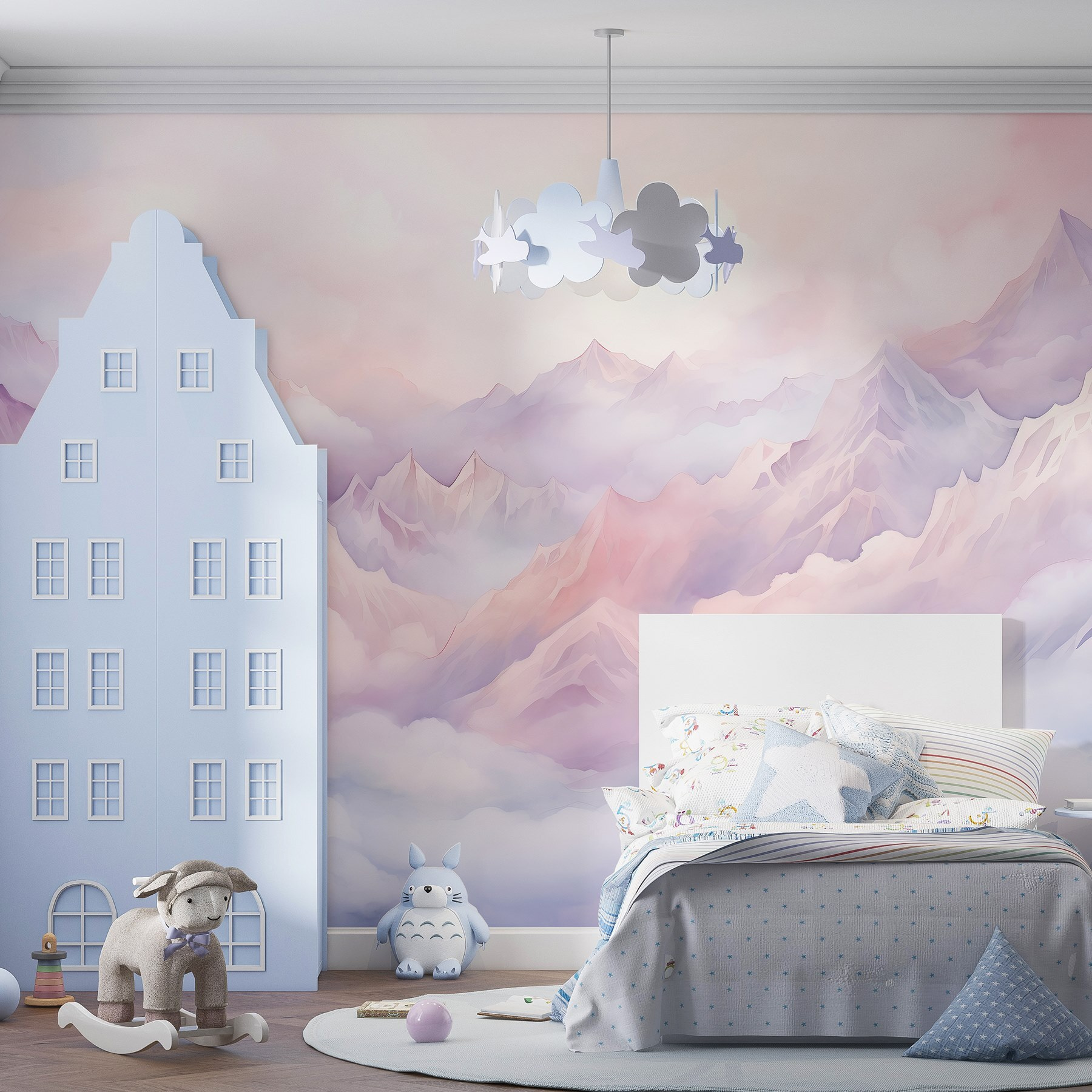 Βυθιστείτε σε μια ονειρική απόδραση με αυτή την εκπληκτική τοιχογραφία τοίχου με μια οροσειρά που φιλιέται από σύννεφα. Φανταστείτε να ξυπνάτε μπροστά σε απαλές παστέλ κορυφές που μοιάζουν να ψιθυρίζουν: “Πάμε σε μια περιπέτεια!” Το στυλ της υδατογραφίας προσδίδει μια απαλή, ηρεμιστική ατμόσφαιρα, ιδανική για μια ζεστή γωνιά ανάγνωσης ή ένα γαλήνιο υπνοδωμάτιο. Είναι σαν να φέρνετε τη φύση στο εσωτερικό χωρίς να χρειάζεται να καταπολεμήσετε πραγματικά έντομα! Οι φίλοι μπορεί να βρεθούν να κοιτάζουν χαμένοι στη σκέψη, ενώ εσείς θα πίνετε τον καφέ σας και θα νιώθετε σαν να είστε στην κορυφή του κόσμου. Αναβαθμίστε το χώρο σας χωρίς κόπο – δεν απαιτούνται μπότες πεζοπορίας!