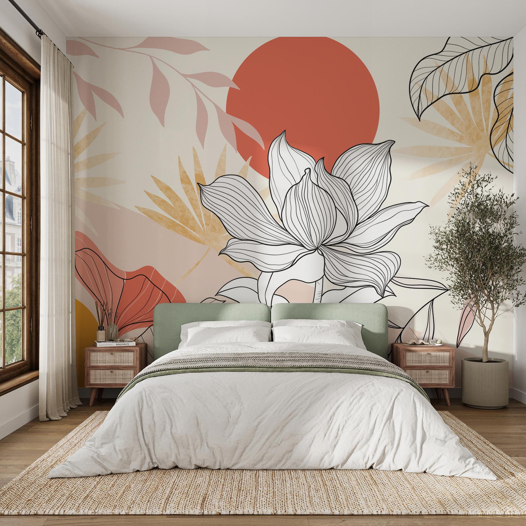 Φωτίστε τους τοίχους σας με αυτή την όμορφη τοιχογραφία με λουλούδια και φύλλα που χορεύουν κάτω από έναν ζεστό κόκκινο ήλιο. Είναι σαν να φέρνετε λίγο από την ύπαιθρο μέσα – χωρίς τα έντομα, φυσικά. Φανταστείτε το: πίνοντας καφέ ενώ απολαμβάνετε τα ζωντανά χρώματα- είναι σαν μια μίνι-διακοπή στο σπίτι σας. Ο συνδυασμός απαλών παστέλ και εντυπωσιακών κόκκινων χρωμάτων δημιουργεί μια τόσο ζεστή αλλά και ενεργητική ατμόσφαιρα. Πάρτε τους φίλους σας για μια χαλαρή κουβέντα και δείτε τους να φωτίζονται καθώς θαυμάζουν την τέχνη. Ιδανικό για κάθε δωμάτιο που χρειάζεται μια πινελιά προσωπικότητας. Ποιος δεν θα ήθελε μια βοτανική απόδραση;