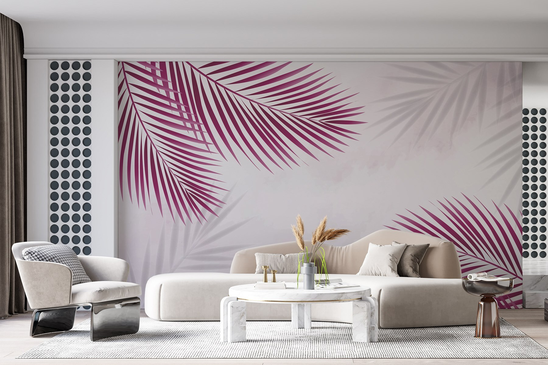 Μεταμορφώστε οποιονδήποτε χώρο με αυτή τη ζωντανή τοιχογραφία με εντυπωσιακά μοβ φύλλα σε φρέσκο λευκό φόντο. Φανταστείτε να μπαίνετε σε ένα δωμάτιο και να αισθάνεστε σαν να βρίσκεστε σε μια τροπική απόδραση χωρίς να έχετε ετοιμάσει βαλίτσα. Αυτά τα τολμηρά φύλλα τραβούν το βλέμμα και δημιουργούν μια αίσθηση ενέργειας – τέλεια για μια ζωντανή κουζίνα ή ένα άνετο καθιστικό.