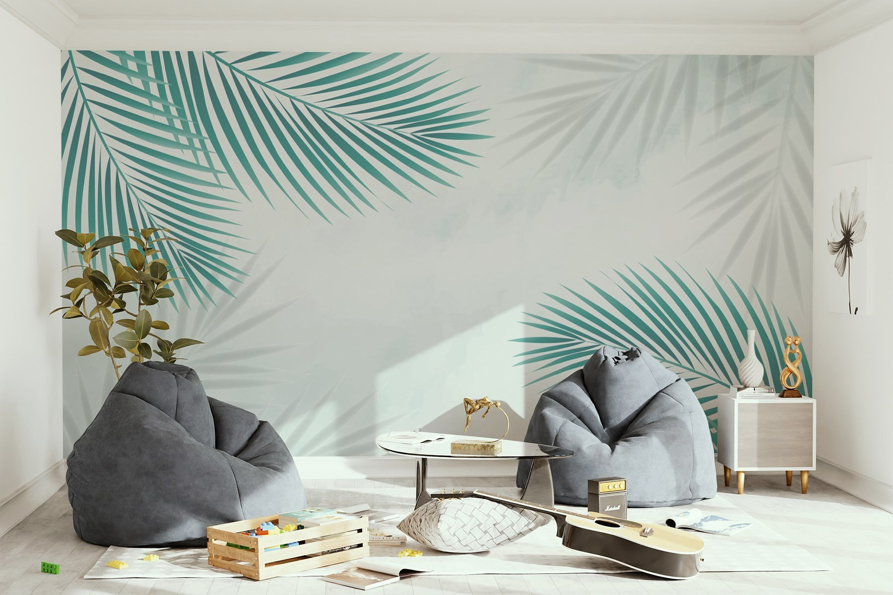 Μεταμορφώστε κάθε χώρο με την τοιχογραφία “Ομάδα πράσινων φύλλων”. Είναι σαν να προσκαλείτε ένα κομμάτι από τους τροπικούς στο σπίτι σας. Φανταστείτε το εξής: επιστρέφετε στο σπίτι μετά από μια κουραστική μέρα, αράζετε με ένα βιβλίο και ξαφνικά νιώθετε σαν να έχετε αποδράσει σε ένα ήρεμο μπανγκαλόου στην παραλία. Αυτά τα λεπτεπίλεπτα φύλλα φοίνικα ψιθυρίζουν χαλάρωση και γαλήνη. Οι απαλές αποχρώσεις του πράσινου και οι απαλές υφές δημιουργούν μια ζεστή ατμόσφαιρα που είναι ιδανική για χαλάρωση. Είναι μια ευχάριστη υπενθύμιση για να αναπνέετε και να απολαμβάνετε την ομορφιά γύρω σας. Ιδανική για κάθε δωμάτιο που χρειάζεται ένα άγγιγμα φύσης, αυτή η τοιχογραφία δεν είναι απλώς διακόσμηση, είναι μίνι διακοπές κάθε μέρα!