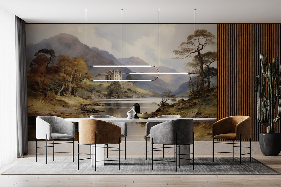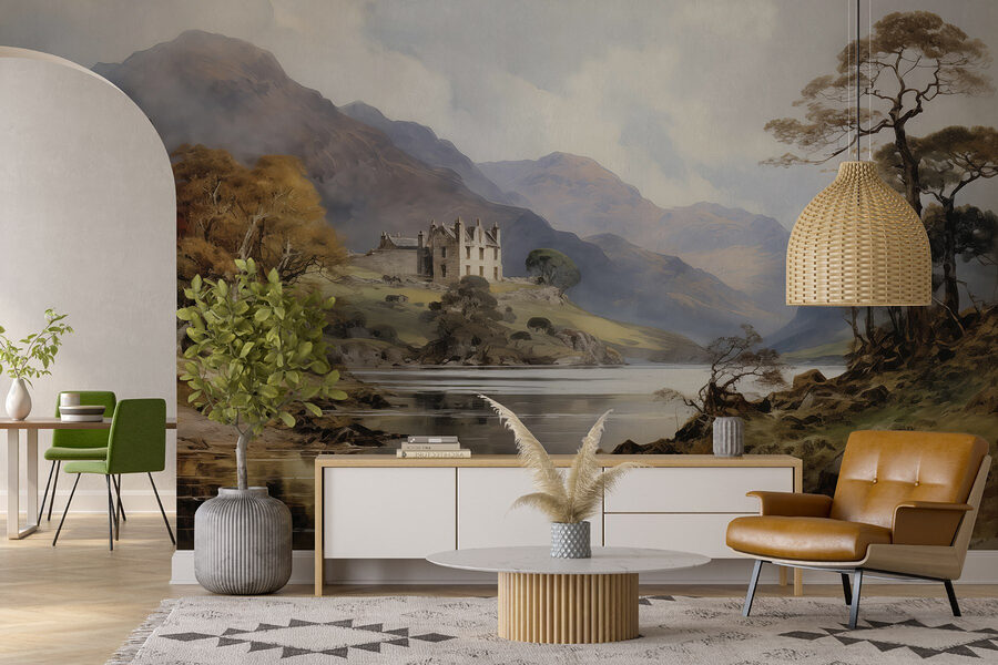Μεταμορφώστε κάθε δωμάτιο σε ένα ζεστό καταφύγιο με αυτή την εκπληκτική τοιχογραφία ακουαρέλας που απεικονίζει ένα κάστρο σκαρφαλωμένο σε ένα λόφο, περιτριγυρισμένο από καταπράσινα δέντρα και επιβλητικά βουνά. Είναι σαν να μπαίνετε σε ένα παραμύθι κάθε φορά που περνάτε από μπροστά του. Φανταστείτε το: χαλαρώνετε στον καναπέ σας, πίνοντας τσάι, ενώ οι τοίχοι σας ζωντανεύουν με ένα ονειρικό τοπίο. Τα απαλά χρώματα προσφέρουν ζεστασιά χωρίς να είναι υπερβολικά έντονα, ιδανικά για εκείνες τις στιγμές που το μόνο που χρειάζεστε είναι ηρεμία. Και ποιος δεν θα ήθελε μια μαγευτική θέα σε ένα κάστρο χωρίς την ταλαιπωρία του ταξιδιού; Μια μικρή πινελιά μαγείας για να φωτίσει την καθημερινότητά σας!