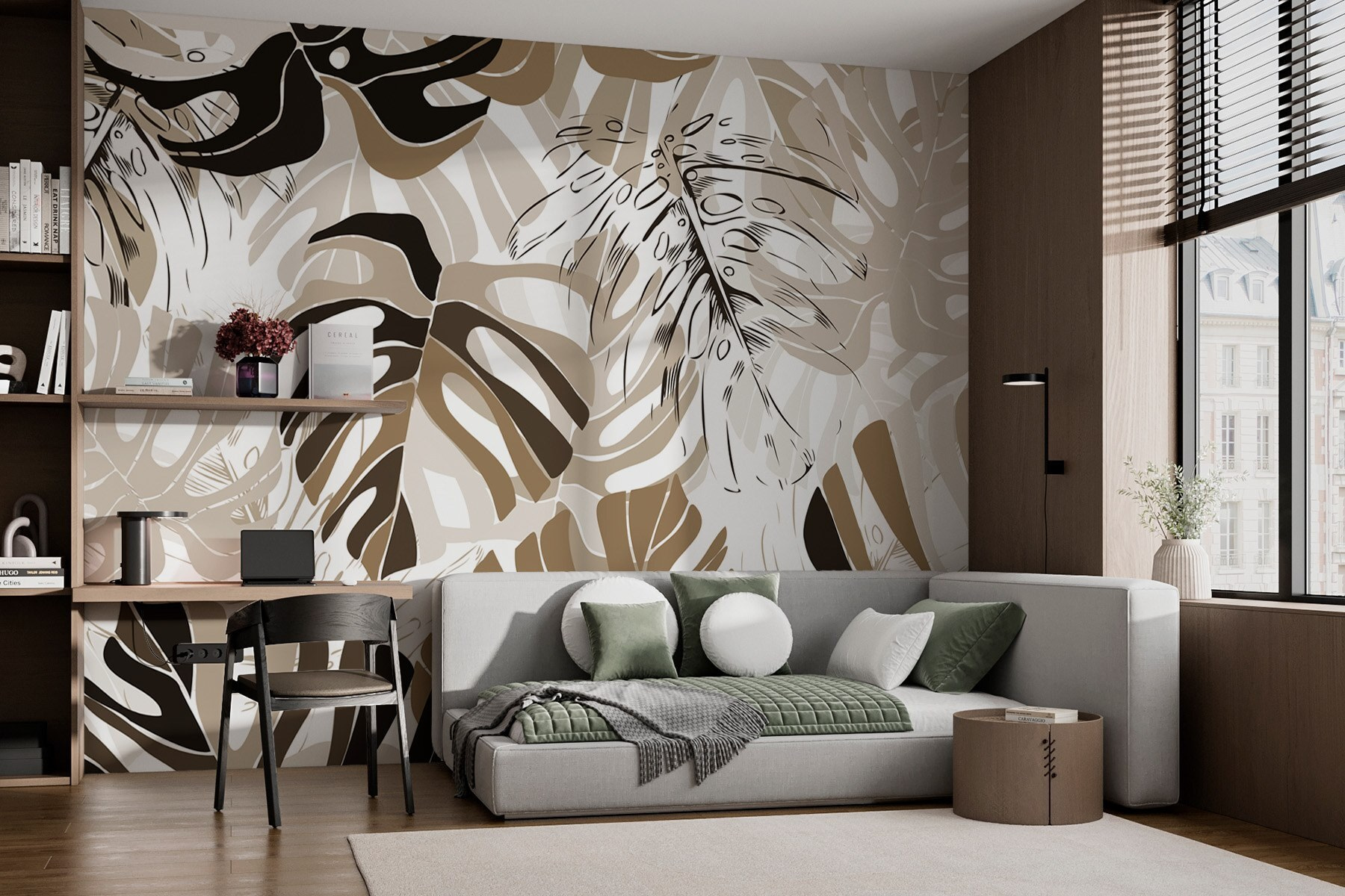 Μεταμορφώστε τον χώρο σας με αυτή την εντυπωσιακή ταπετσαρία τοίχου με ένα ζωντανό μοτίβο φύλλων σε ένα καθαρό λευκό φόντο. Είναι σαν μια τροπική απόδραση, χωρίς να χρειάζεται να ανησυχείτε για τα ηλιακά εγκαύματα. Φανταστείτε να χαλαρώνετε στην αγαπημένη σας πολυθρόνα, με ένα δροσερό ποτό στο χέρι, καθώς αυτή η ταπετσαρία φέρνει το εξωτερικό μέσα στο σπίτι σας. Οι γήινοι τόνοι αναμειγνύονται αβίαστα, προσθέτοντας ζεστασιά και προσωπικότητα σε κάθε δωμάτιο. Είτε διακοσμείτε μια ζεστή γωνιά είτε επιδιώκετε μια πλήρη ατμόσφαιρα ζούγκλας, αυτά τα φύλλα είναι έτοιμα να πάρουν την πρώτη θέση. Είναι ένα έργο τέχνης της φύσης, που περιμένει να δώσει ζωή στους τοίχους σας!