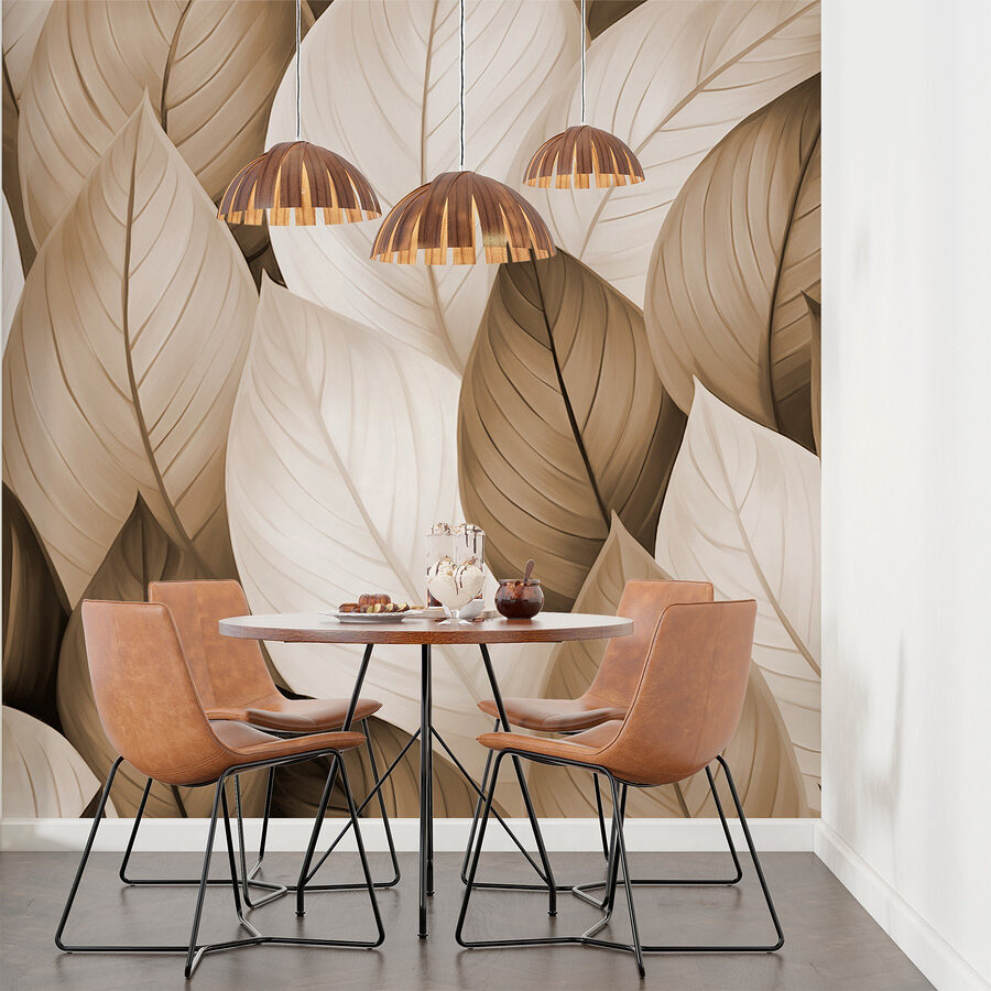 Μεταμορφώστε κάθε δωμάτιο σε μια γαλήνια όαση με αυτή την εκπληκτική ταπετσαρία που απεικονίζει ένα μωσαϊκό από καφέ και λευκά φύλλα. Φανταστείτε να μπαίνετε στο δωμάτιο και να σας αγκαλιάζει η ηρεμία της φύσης. Οι απαλές αποχρώσεις δημιουργούν μια ζεστή ατμόσφαιρα, ιδανική για άνετες βραδιές ή φωτεινά, ηλιόλουστα πρωινά. Είναι σαν να έχετε ένα μικρό κομμάτι της φύσης μέσα στο σπίτι σας, χωρίς τα έντομα! Φανταστείτε μια συνάντηση με φίλους, όπου όλοι νιώθουν χαλαροί και ευτυχισμένοι, απλά και μόνο επειδή οι τοίχοι μοιάζουν με ένα γαλήνιο δάσος. Ιδανική για το σαλόνι ή ακόμα και για ένα ήσυχο υπνοδωμάτιο – λίγα μόνο βήματα μακριά από μια μίνι απόδραση κάθε μέρα!