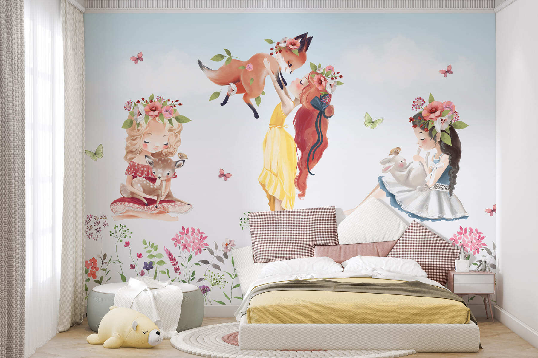 Μεταμορφώστε οποιονδήποτε χώρο με αυτή τη μαγευτική τοιχογραφία τοίχου με μια γοητευτική ομάδα κοριτσιών σε συνδυασμό με αξιολάτρευτα ζώα μέσα σε ένα ζωηρό πεδίο με λουλούδια. Φανταστείτε τα απολαυστικά γέλια και τα ουρλιαχτά χαράς που φέρνει, καθιστώντας την ένα τέλειο σκηνικό για παιχνιδιάρικες στιγμές. Κάθε κορίτσι, με το μοναδικό της στυλ και τον χαδιάρικο σύντροφό της, αποτυπώνει ένα ιδιόρρυθμο πνεύμα που μοιάζει σαν να μπαίνετε σε ένα παραμύθι. Δεν είναι απλώς διακόσμηση- προσκαλεί τη φαντασία και το θαύμα. Προσθέτοντας μια πινελιά μαγείας, αυτή η τοιχογραφία κάνει μια υπέροχη δήλωση στα παιδικά δωμάτια ή στους χώρους παιχνιδιού, δημιουργώντας μια φιλόξενη όαση γεμάτη χρώμα και ζεστασιά. Μια λαμπερή υπενθύμιση των ανέμελων ημερών που περνάτε στην ύπαιθρο, είναι βέβαιο ότι θα προκαλέσει ειλικρινείς συζητήσεις και γλυκές αναμνήσεις.