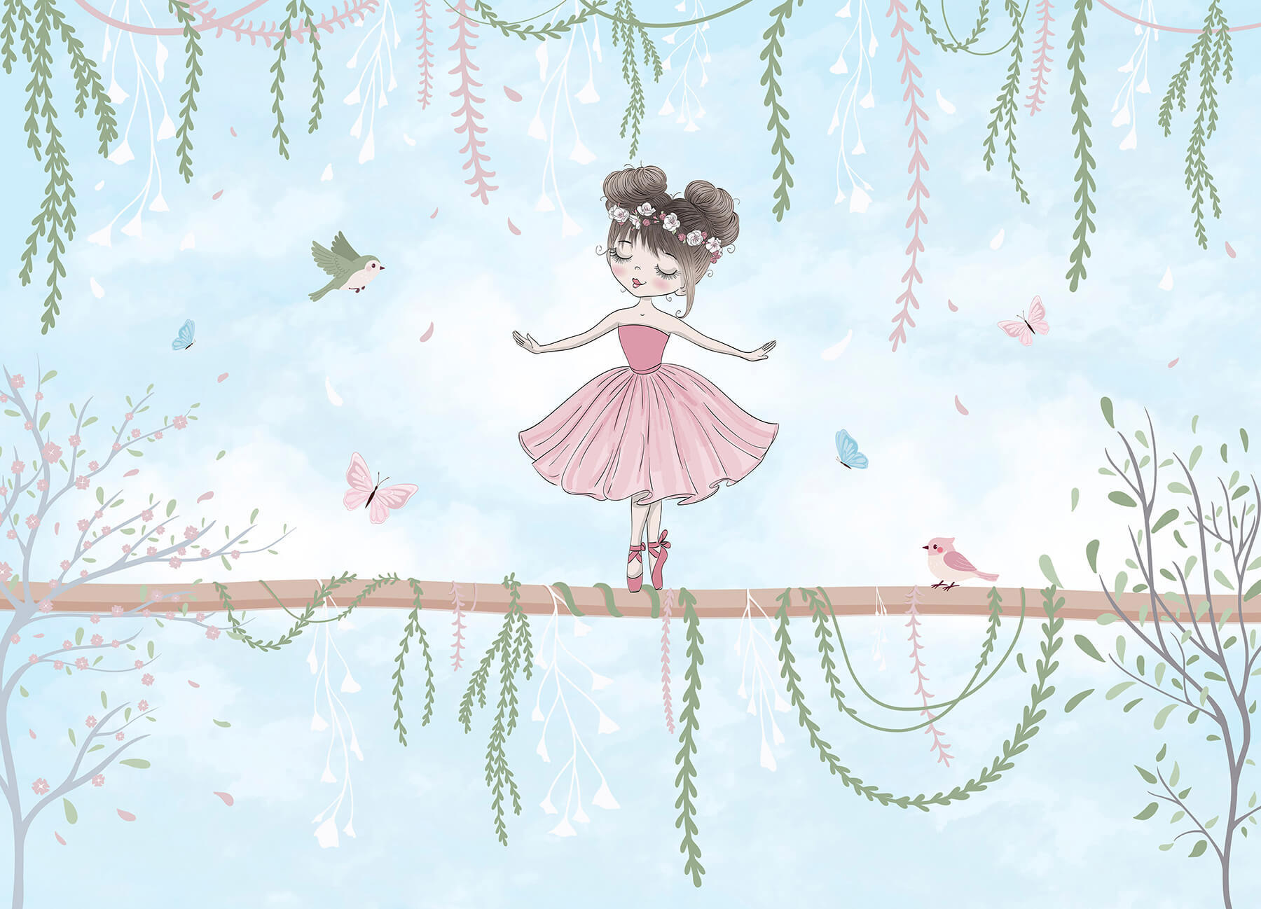 Μπείτε σε έναν ονειρικό κόσμο με αυτή τη μαγευτική τοιχογραφία που απεικονίζει ένα γοητευτικό κορίτσι με ροζ φόρεμα, που κάθεται με χάρη πάνω σε ένα κλαδί. Περιτριγυρισμένο από πεταλούδες που φτερουγίζουν και παιχνιδιάρικα πουλιά, μοιάζει με σκηνή βγαλμένη από ένα υπέροχο παραμύθι. Φανταστείτε να φωτίζει μια ζεστή γωνιά ανάγνωσης ή να φέρνει χαρά στο δωμάτιο ενός μικρού παιδιού. Τα απαλά χρώματα και οι φανταστικές λεπτομέρειες προκαλούν χαμόγελα, κάνοντας κάθε ματιά να μοιάζει με μια ζεστή αγκαλιά. Φανταστείτε να πίνετε τσάι, να θαυμάζετε τη χάρη της και να χάνεστε στις ιστορίες που εμπνέει – σοβαρά, ποιος δεν θα ήθελε κάτι τέτοιο; Αυτή η ταπετσαρία δεν είναι απλώς διακόσμηση, είναι μια μαγική απόδραση!
