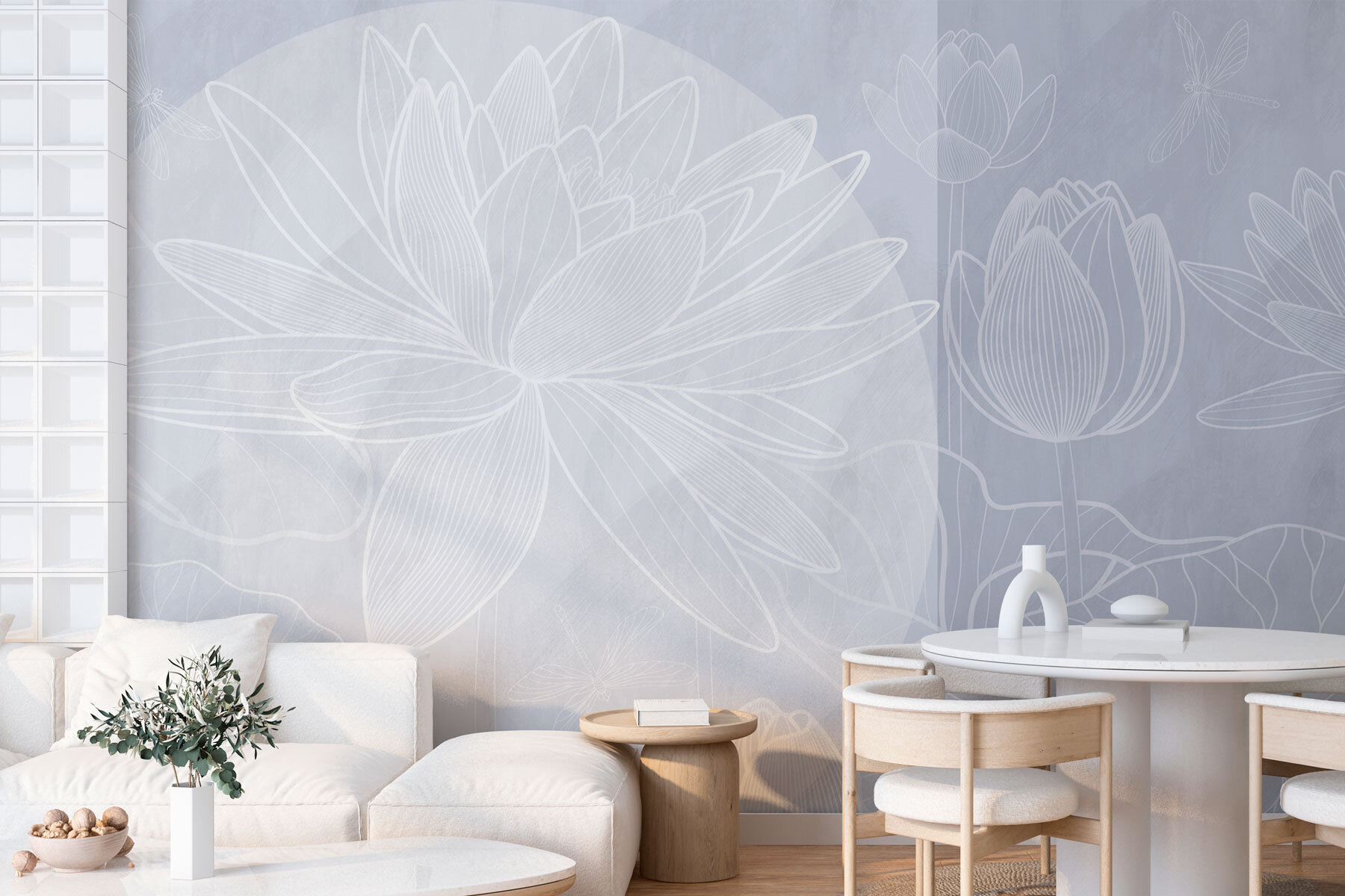 Μεταμορφώστε τον χώρο σας με αυτό το εκπληκτικό “Τολμηρό σχέδιο λευκών λουλουδιών σε γκρι φόντο”. Φανταστείτε να μπαίνετε στο δωμάτιό σας και να νιώθετε αμέσως πιο χαλαροί. Οι απαλές, ρέουσες γραμμές αυτών των κομψών λουλουδιών είναι σαν ένα απαλό αεράκι μια ανοιξιάτικη μέρα, που ψιθυρίζει γαλήνη και ηρεμία.