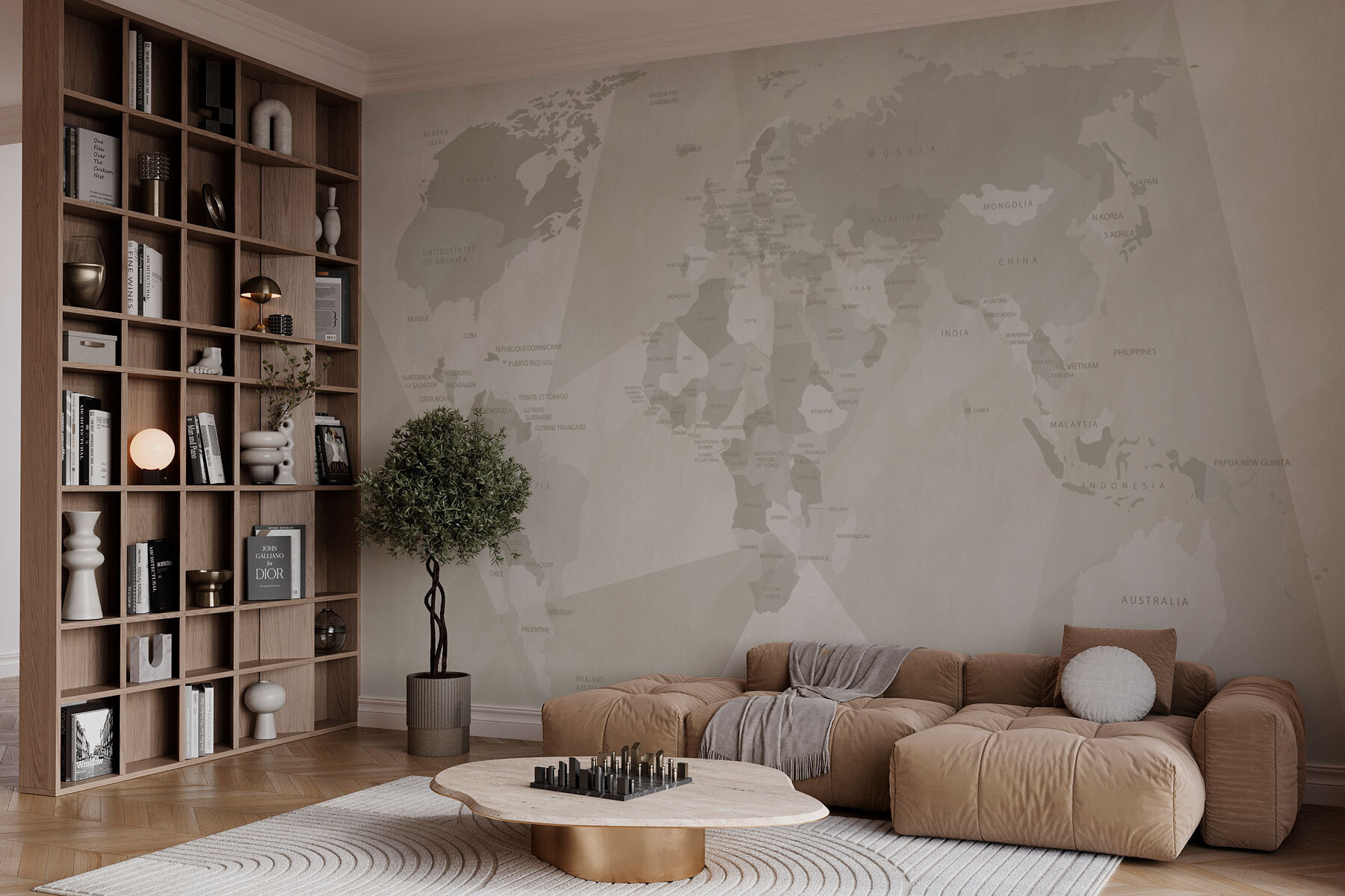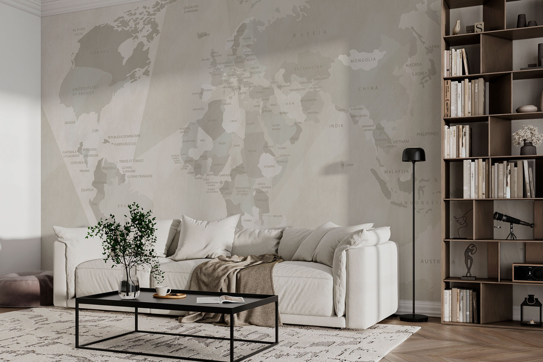 Μεταμορφώστε οποιοδήποτε δωμάτιο σε παράδεισο για τους λάτρεις των ταξιδιών με την «Τοιχογραφία Χάρτης του Κόσμου». Φανταστείτε να πίνετε τον καφέ σας στο σαλόνι σας και να βλέπετε μπροστά σας έναν ελκυστικό χάρτη του κόσμου που σας προκαλεί την επιθυμία να ταξιδέψετε. Η απαλή χρωματική παλέτα συνδυάζεται άψογα με οποιαδήποτε διακόσμηση, προσδίδοντας μια αίσθηση φρεσκάδας και κλασικού στιλ.