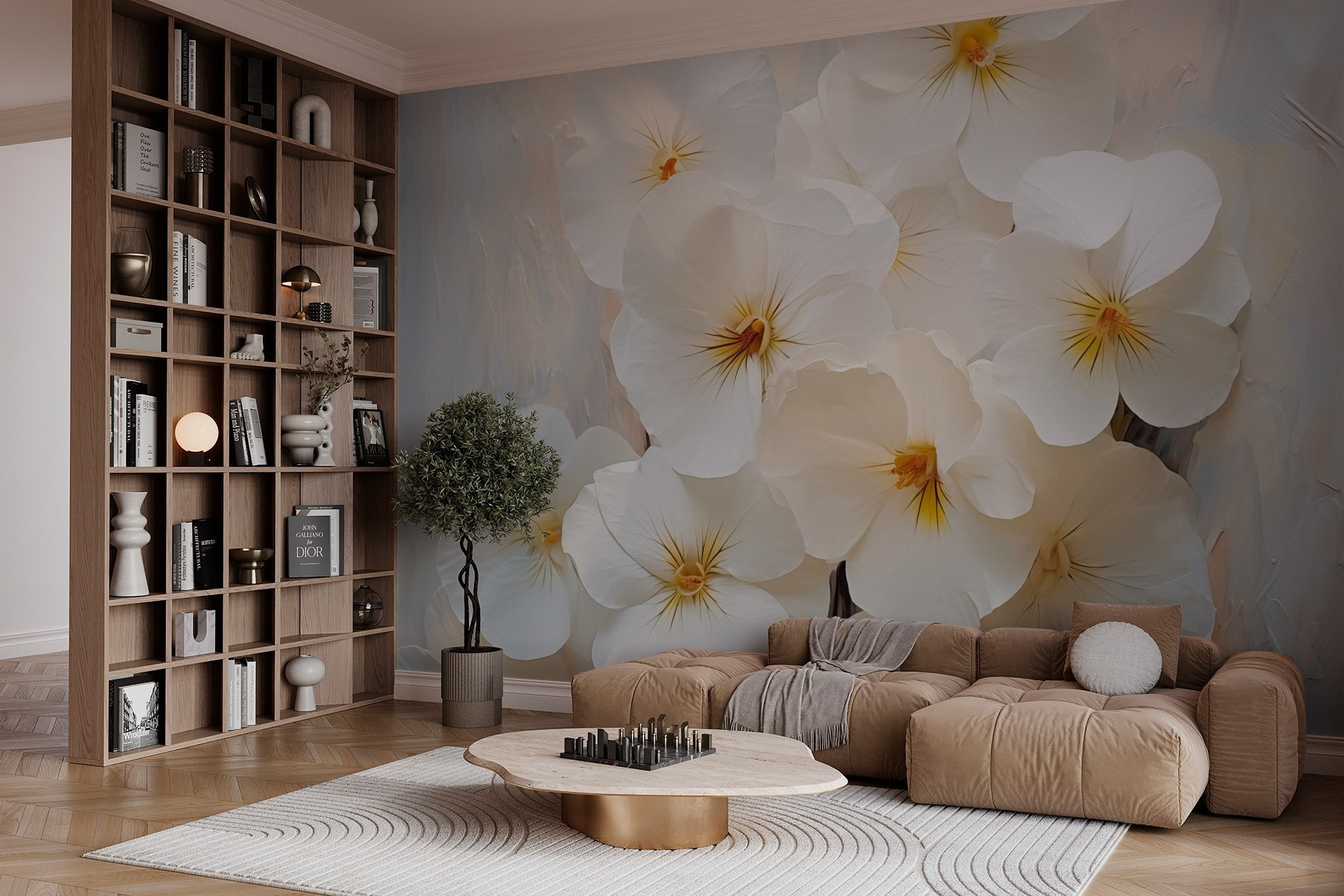 Μεταμορφώστε τον χώρο σας σε έναν γαλήνιο κήπο με την τοιχογραφία Ταπετσαρίες Group of White Flowers. Φανταστείτε να πίνετε τον πρωινό σας καφέ ενώ περιβάλλεστε από απαλά πέταλα, σαν να έχει μπει μέσα η ίδια η φύση. Αυτά τα άνθη φέρνουν μια πινελιά ηρεμίας και κομψότητας, κάνοντας κάθε δωμάτιο να μοιάζει με μια φωτεινή ανοιξιάτικη μέρα. Οι απαλές λευκές αποχρώσεις χορεύουν όμορφα σε ένα ελαφρύ φόντο, προσκαλώντας το μάτι να παραμείνει. Είτε πρόκειται για μια ζεστή γωνιά είτε για ένα ζωντανό καθιστικό, αυτή η τοιχογραφία ψιθυρίζει στην καρδιά, υπενθυμίζοντας σε όλους ότι η ομορφιά είναι μόνο μια ματιά μακριά. Ιδανική για να ονειρεύεστε, να κουβεντιάζετε ή απλώς να απολαμβάνετε μια ήσυχη στιγμή.