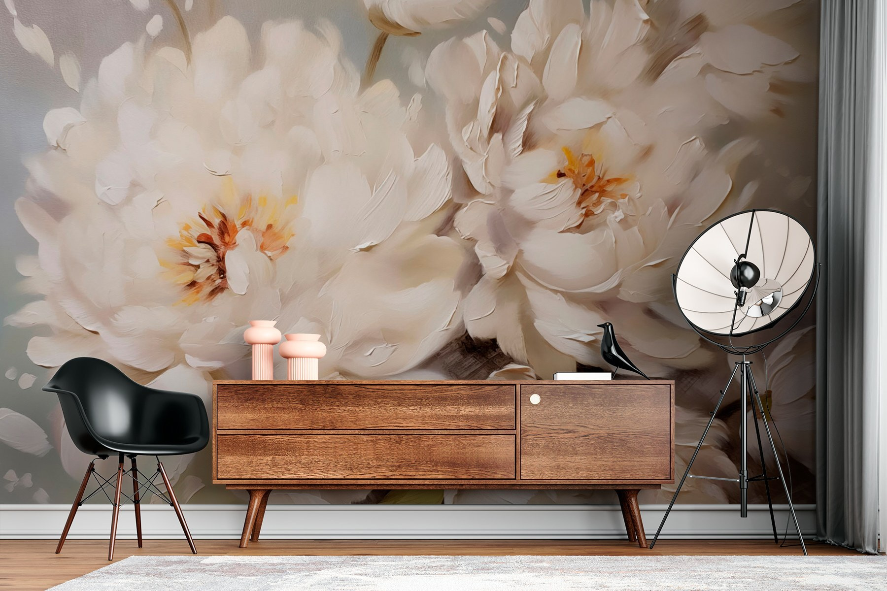 Μεταμορφώστε το χώρο σας με αυτή τη μαγευτική τοιχογραφία με τα λεπτά λευκά λουλούδια που φαίνεται να ανθίζουν από τον τοίχο. Φανταστείτε να μπαίνετε σε έναν γαλήνιο κήπο κάθε φορά που μπαίνετε στο δωμάτιο – τα απαλά πέταλα τραβούν το βλέμμα, προσκαλώντας ζεστασιά και ηρεμία. Αυτή η εκπληκτική τοιχογραφία μοιάζει με μια ανάσα φρέσκου αέρα, ιδανική για να φωτίσει οποιαδήποτε γωνιά του σπιτιού σας. Φανταστείτε χαλαρά απογεύματα που περνάτε πίνοντας τσάι, περιτριγυρισμένοι από αυτή την ειρηνική ομορφιά. Είναι κάτι περισσότερο από διακόσμηση- είναι ένα μικρό κομμάτι της φύσης που ψιθυρίζει κομψότητα. Ένα τέλειο σημείο συνομιλίας για τους καλεσμένους, επίσης!