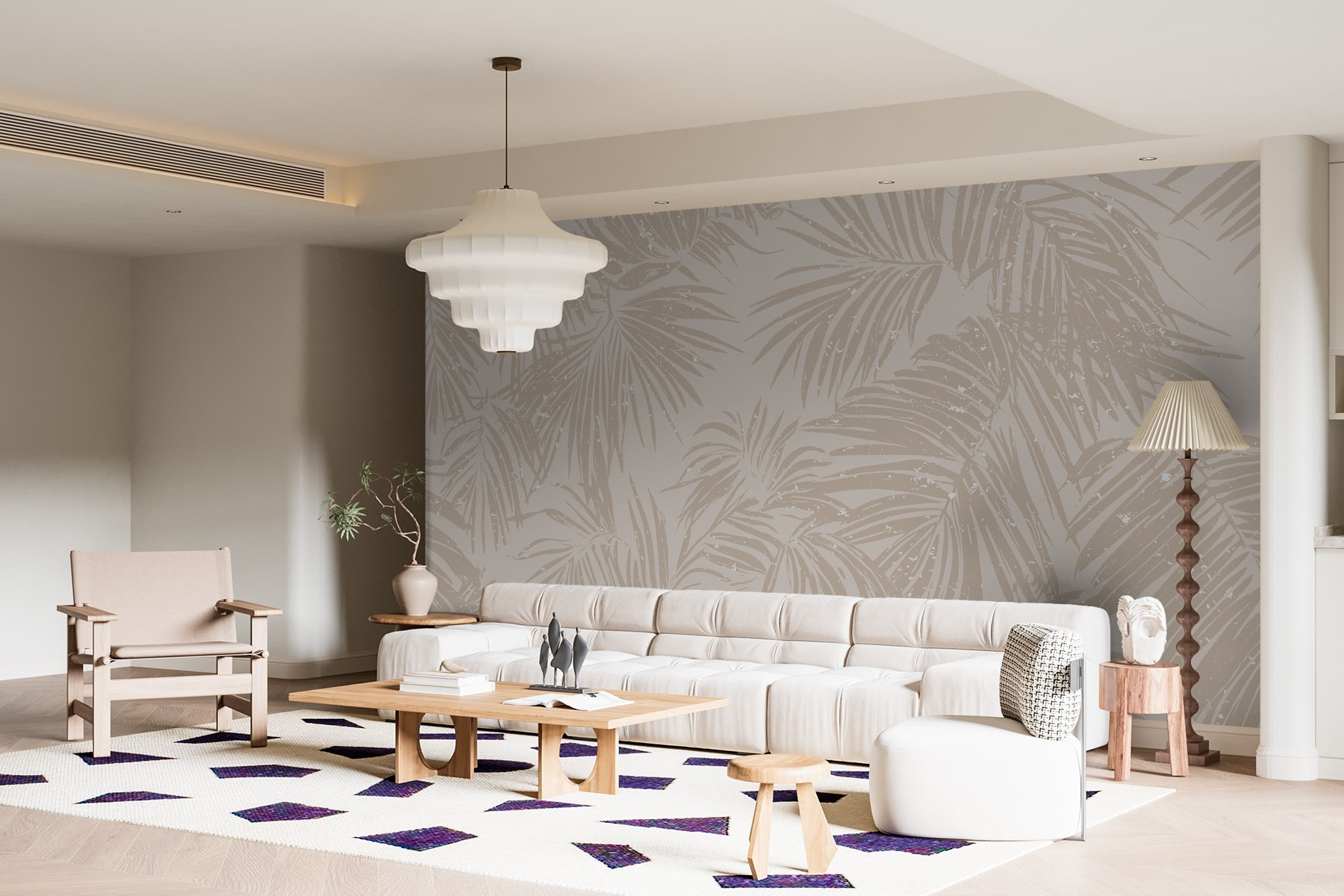 Imagine stepping into a serene oasis right in your living room. This wall mural, with its gentle palm leaf patterns on a soft neutral backdrop, invites calm vibes and a touch of tropical charm. Picture hosting friends, and instead of just the usual chit-chat, they’re drawn to your stunning walls—like, “Where’d you get this?” It’s got that perfect mix of elegance and laid-back feel, making it a fab backdrop for cozy evenings or sunny brunches. Light bounces off those leaves just right, creating a peaceful ambiance. It’s like having a mini-vacation at home, minus the plane tickets and sunscreen! Perfect for a nature lover or just anyone wanting to escape the everyday grind without actually leaving. Trust that it’ll elevate the space in a way that leaves everyone feeling, well, a little more relaxed.