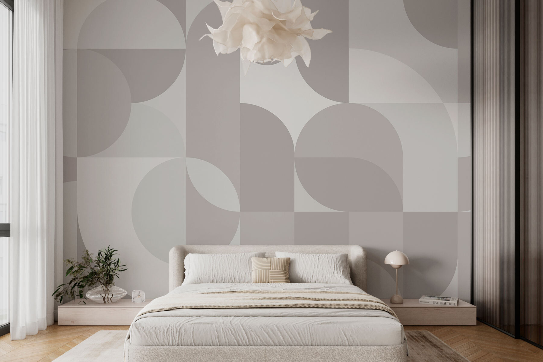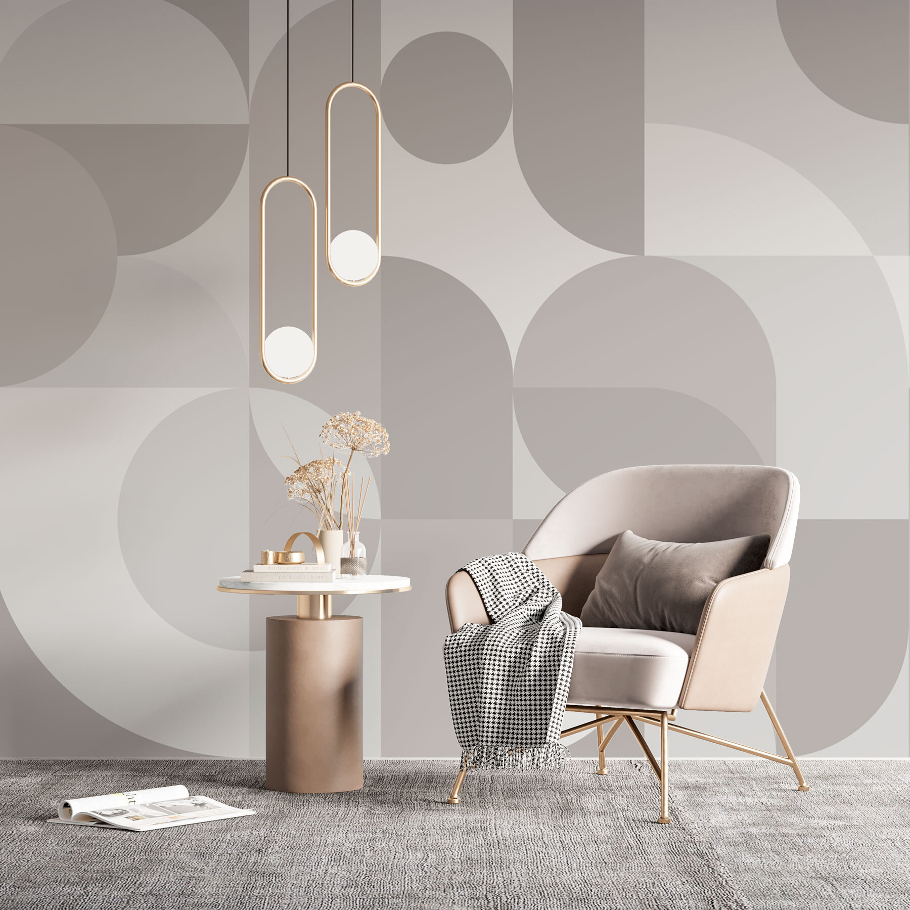 Μεταμορφώστε τον χώρο σας σε ένα κομψό καταφύγιο με αυτή τη γεωμετρική ταπετσαρία σε γκρι και λευκό χρώμα. Είναι σαν μια ζεστή αγκαλιά για τους τοίχους σας, συνδυάζοντας μοντέρνα κομψότητα και παιχνιδιάρικα μοτίβα. Φανταστείτε το εξής: ένα ηλιόλουστο απόγευμα, φίλοι που μαζεύονται και τα βλέμματα όλων στραμμένα προς αυτό το εκπληκτικό φόντο – σίγουρα θα πυροδοτήσει ζωντανές συζητήσεις! Οι απαλοί τόνοι δημιουργούν μια χαλαρωτική ατμόσφαιρα, ιδανική για να χαλαρώσετε με ένα βιβλίο ή απλά να ονειροπολήσετε. Επιπλέον, είναι ο τέλειος καμβάς για την εκλεκτική διακόσμηση του χώρου σας. Ποιος θα φανταζόταν ότι οι τοίχοι μπορούν να κρύβουν τόση γοητεία;