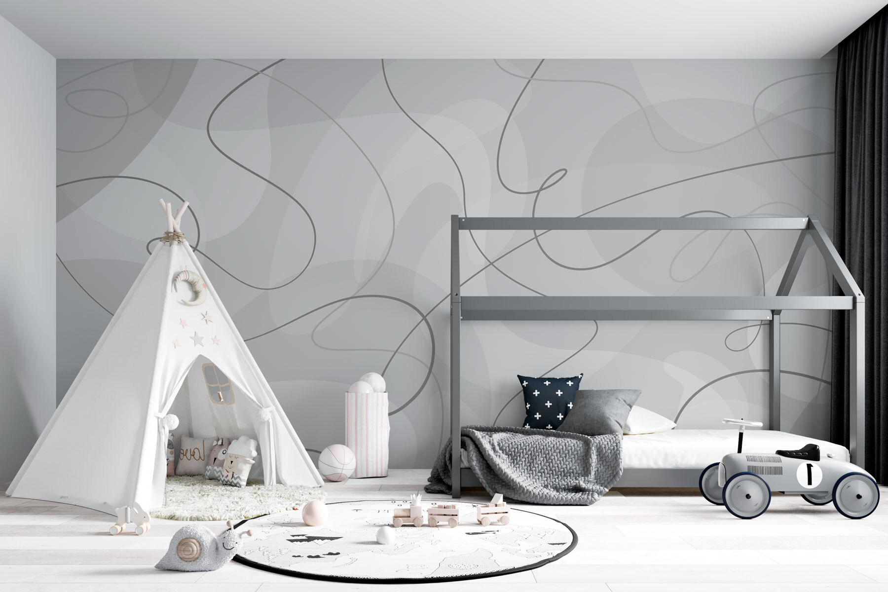 Μεταμορφώστε τον χώρο σας σε ένα κομψό καταφύγιο με αυτή την γκρι και λευκή ταπετσαρία. Είναι σαν ένας απαλός χορός γραμμών και καμπυλών, που προσφέρει μια πινελιά μοντέρνας κομψότητας που θα σας κάνει να νιώσετε απόλυτα χαλαροί. Φανταστείτε να κουλουριάζεστε με ένα καλό βιβλίο, με εκείνα τα παιχνιδιάρικα στροβιλίσματα στο φόντο να σας ψιθυρίζουν ιστορίες έμπνευσης. Είναι ιδανική για μια ζεστή γωνιά ανάγνωσης ή για εκείνο τον ανυποψίαστο τοίχο που ζητάει την προσοχή σας. Η λεπτότητα του σχεδίου διατηρεί τα πράγματα φρέσκα χωρίς να τραβάει την προσοχή σας. Λιγότερο είναι περισσότερο, σωστά; Μια πινελιά κομψότητας, μια δόση διασκέδασης – αυτή η ταπετσαρία τα έχει όλα. Ποιος θα φανταζόταν ότι η τέχνη στον τοίχο θα μπορούσε να είναι τόσο φιλόξενη;
