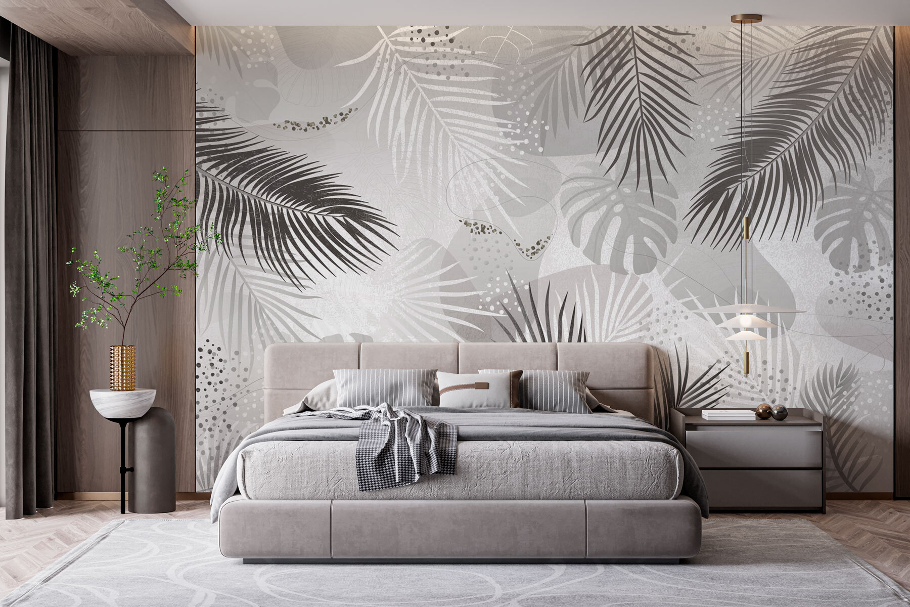 Μεταμορφώστε οποιοδήποτε δωμάτιο με αυτή την εκπληκτική ταπετσαρία τοίχου, με κομψό γκρι και λευκό φόντο διακοσμημένο με κομψά φύλλα. Είναι σαν να φέρνετε μια πνοή τροπικού κλίματος στο σπίτι σας, χωρίς την υγρασία! Φανταστείτε να μπαίνετε στο σαλόνι σας και να νιώθετε την ηρεμία της φύσης να σας κατακλύζει. Το παιχνιδιάρικο παιχνίδι των αποχρώσεων μπορεί να προκαλέσει σοβαρή ζήλια για το στυλ σας, ειδικά κατά τη διάρκεια συγκεντρώσεων – όλοι θα σας ρωτούν πού το βρήκατε. Αυτή η ταπετσαρία δεν είναι απλώς διακοσμητική, δημιουργεί μια ατμόσφαιρα, μετατρέποντας τους μονότονους τοίχους σε ένα statement. Ιδανική για όσους θέλουν να προσθέσουν μια πινελιά μοντέρνου στυλ, διατηρώντας παράλληλα την ηρεμία και την κομψότητα. Ποιος θα φανταζόταν ότι ένας τοίχος μπορεί να είναι τόσο φιλόξενος;